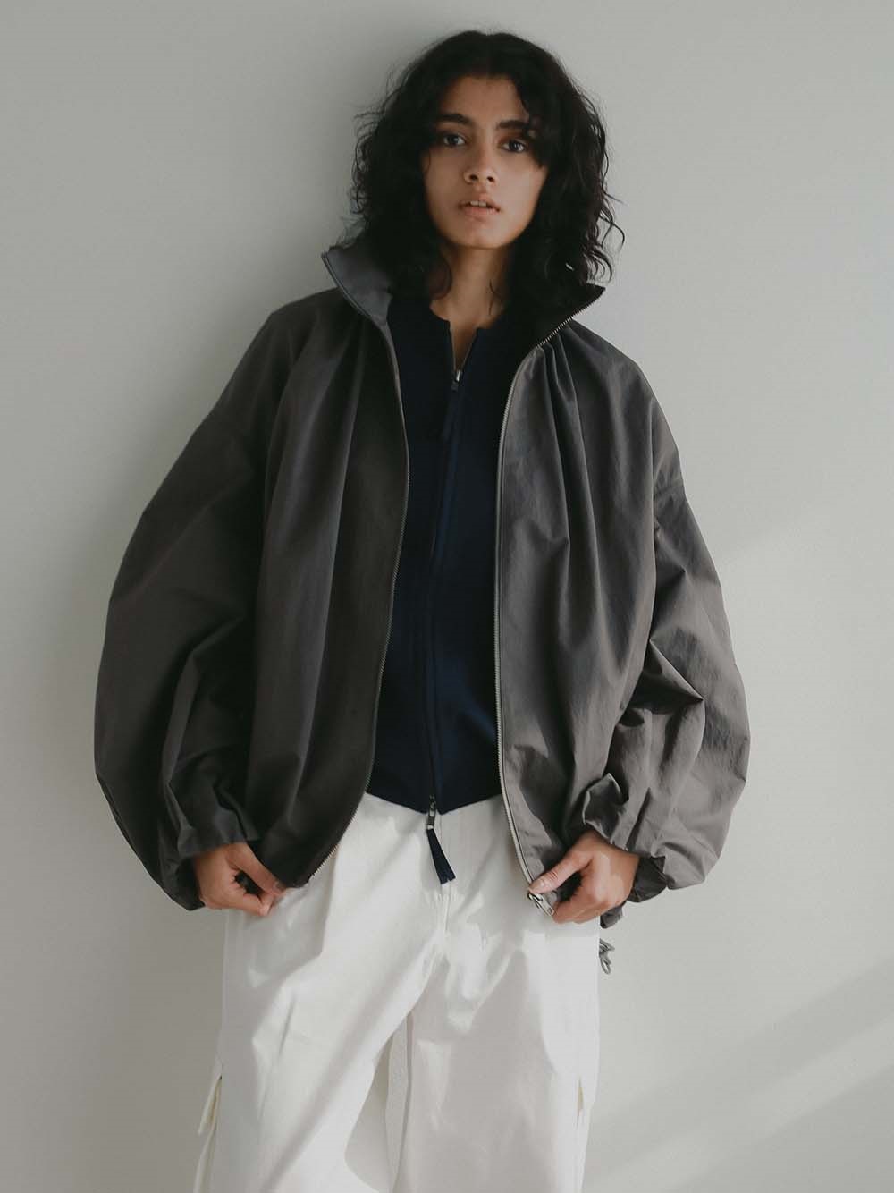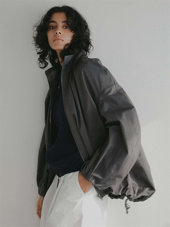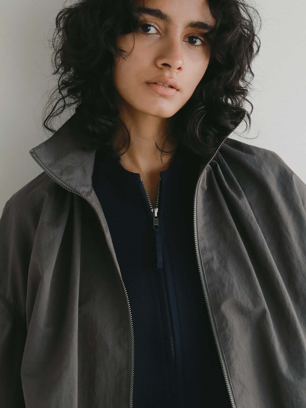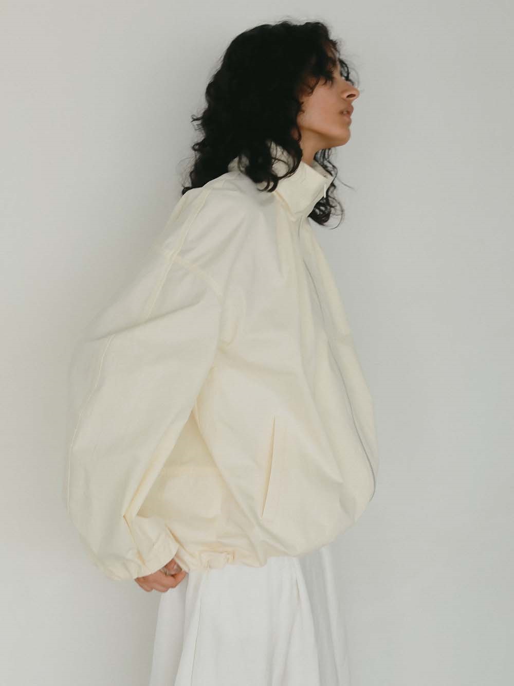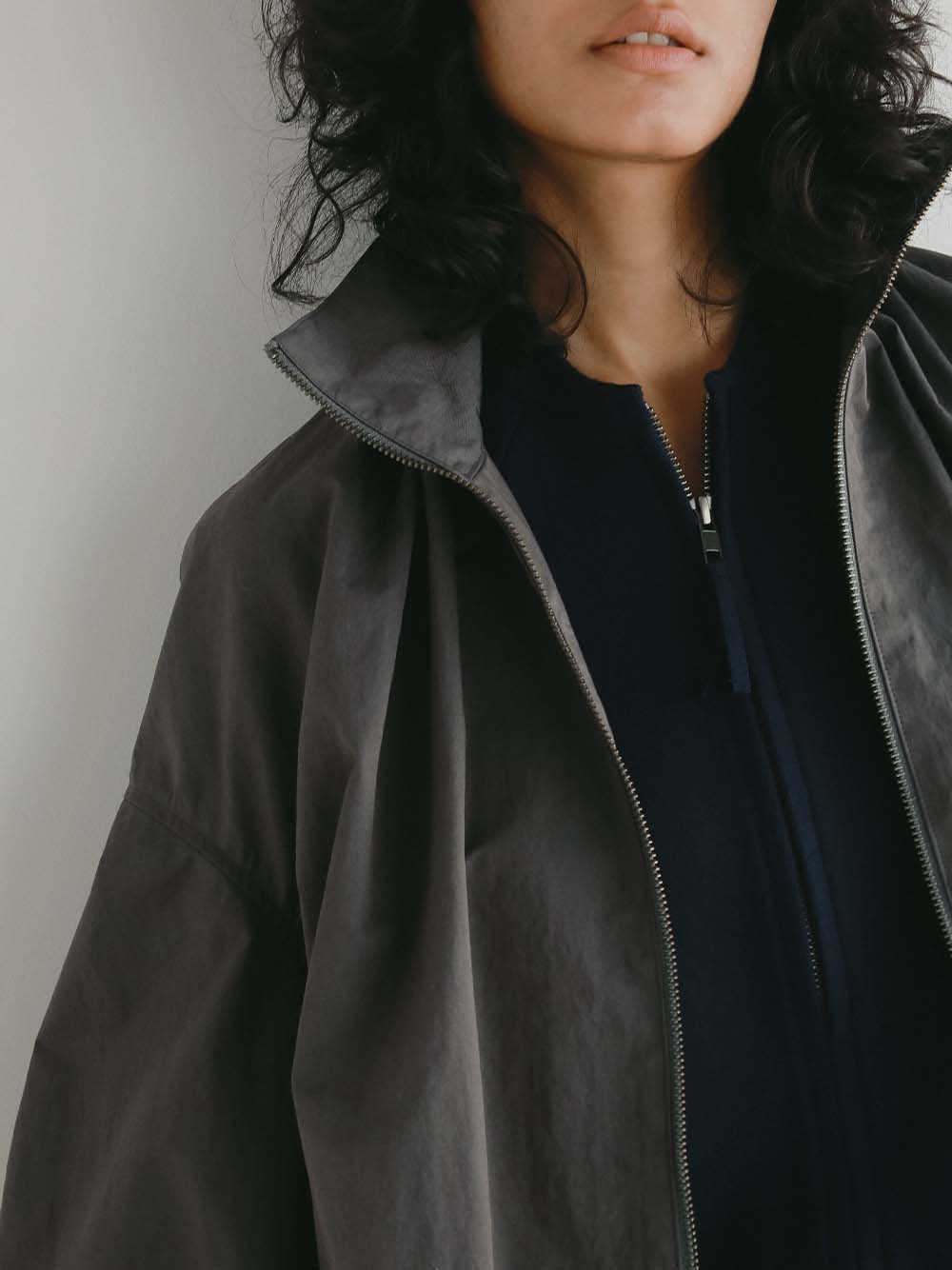 ハリのある高密度のコットンナイロンでデザインブルゾンを作りました。