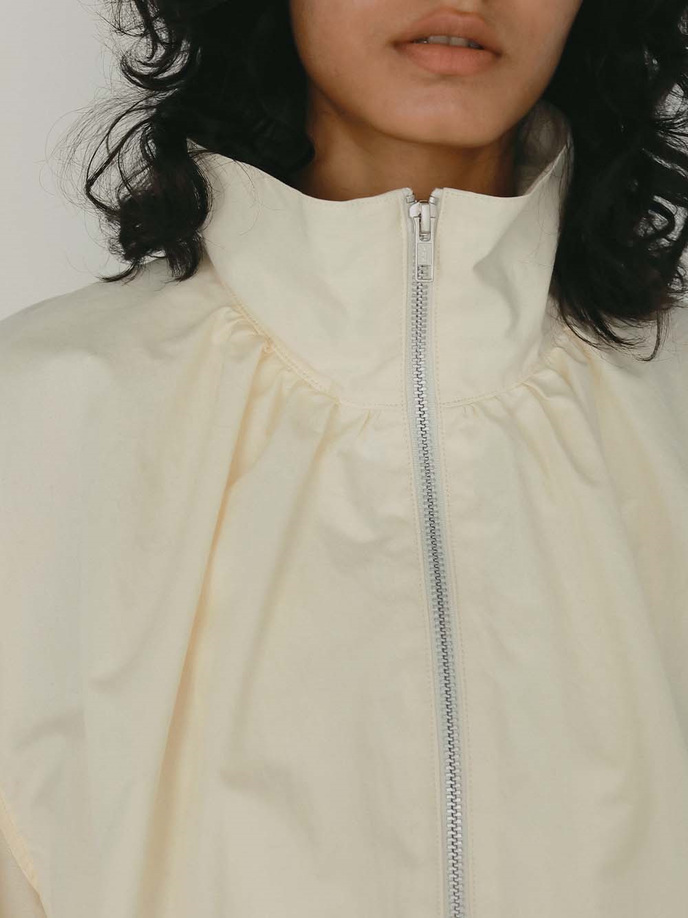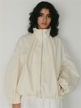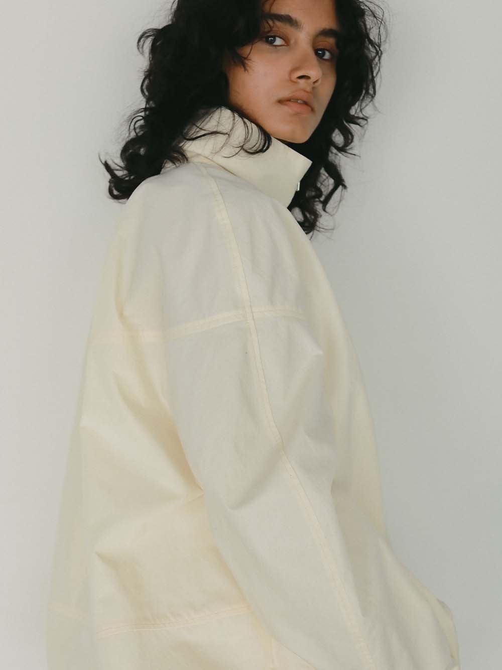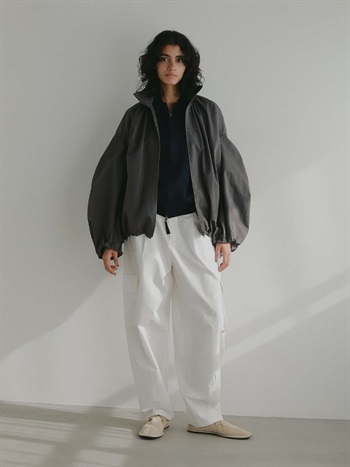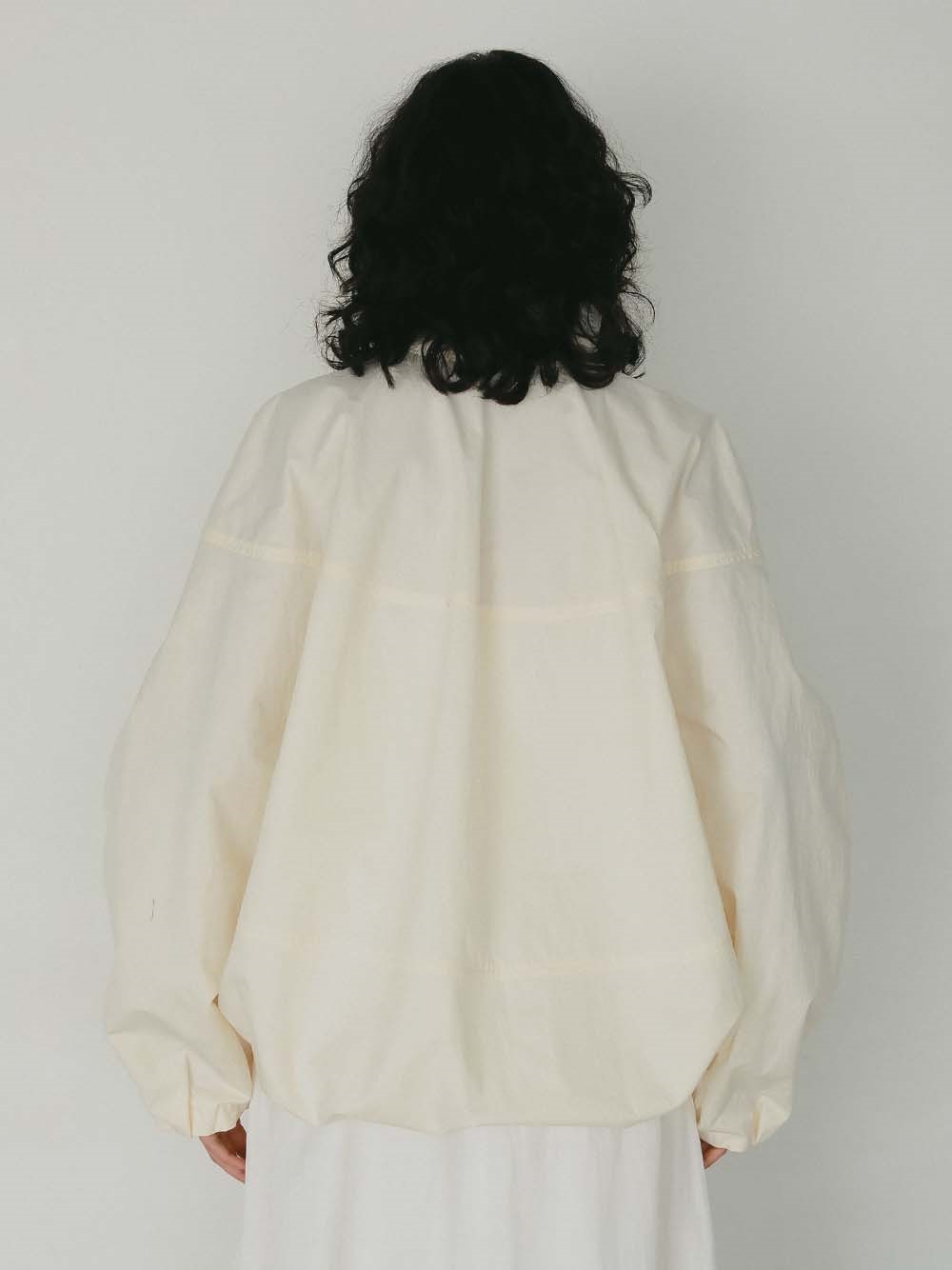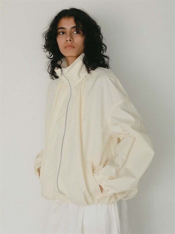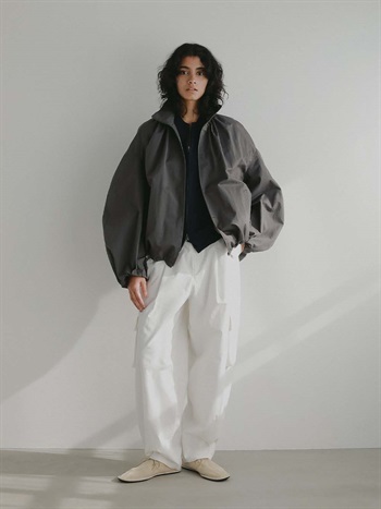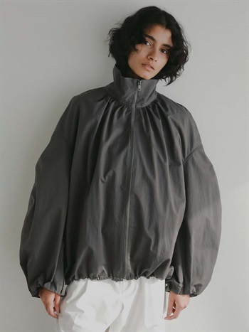 ハリのある高密度のコットンナイロンでデザインブルゾンを作りました。