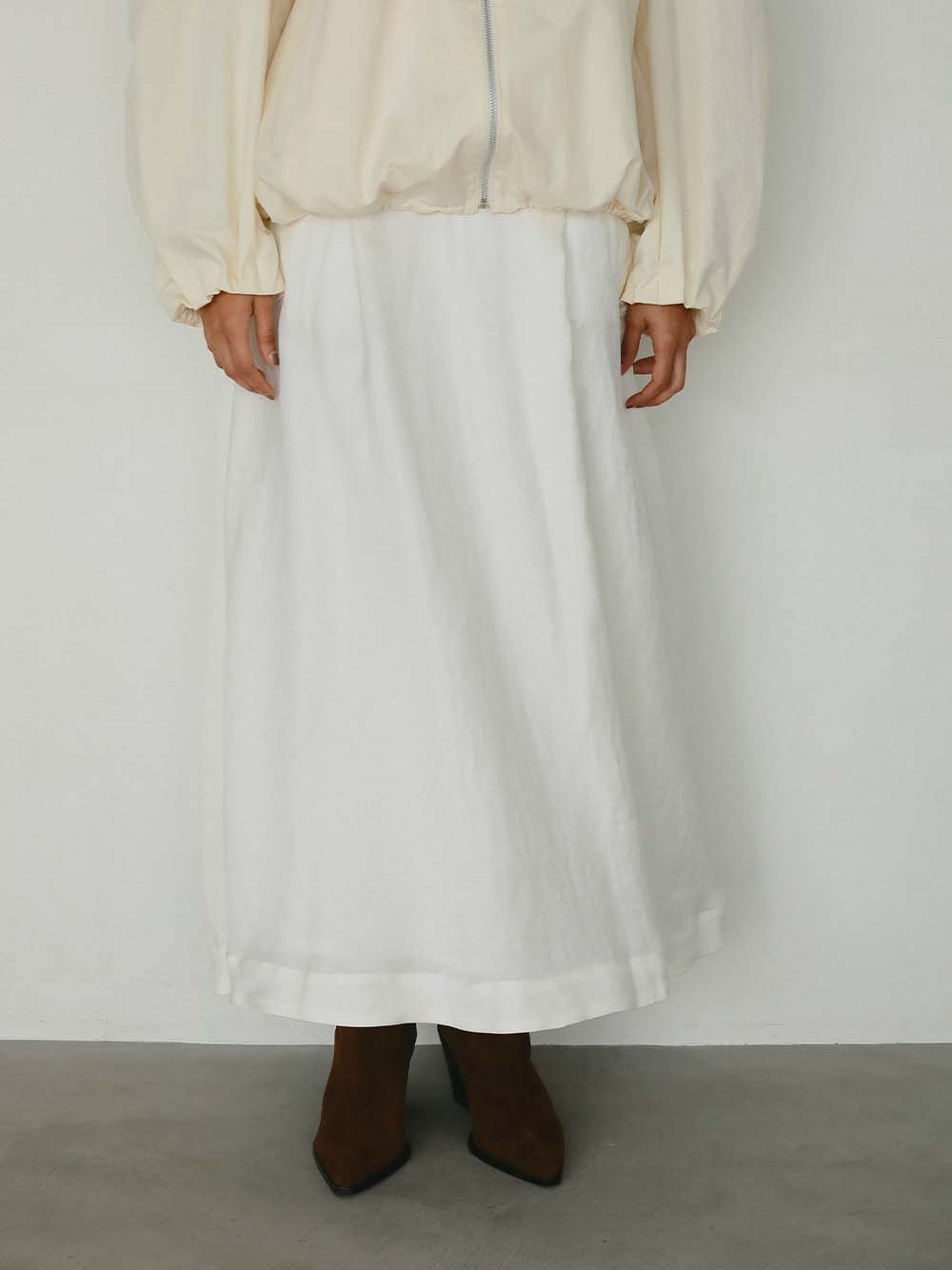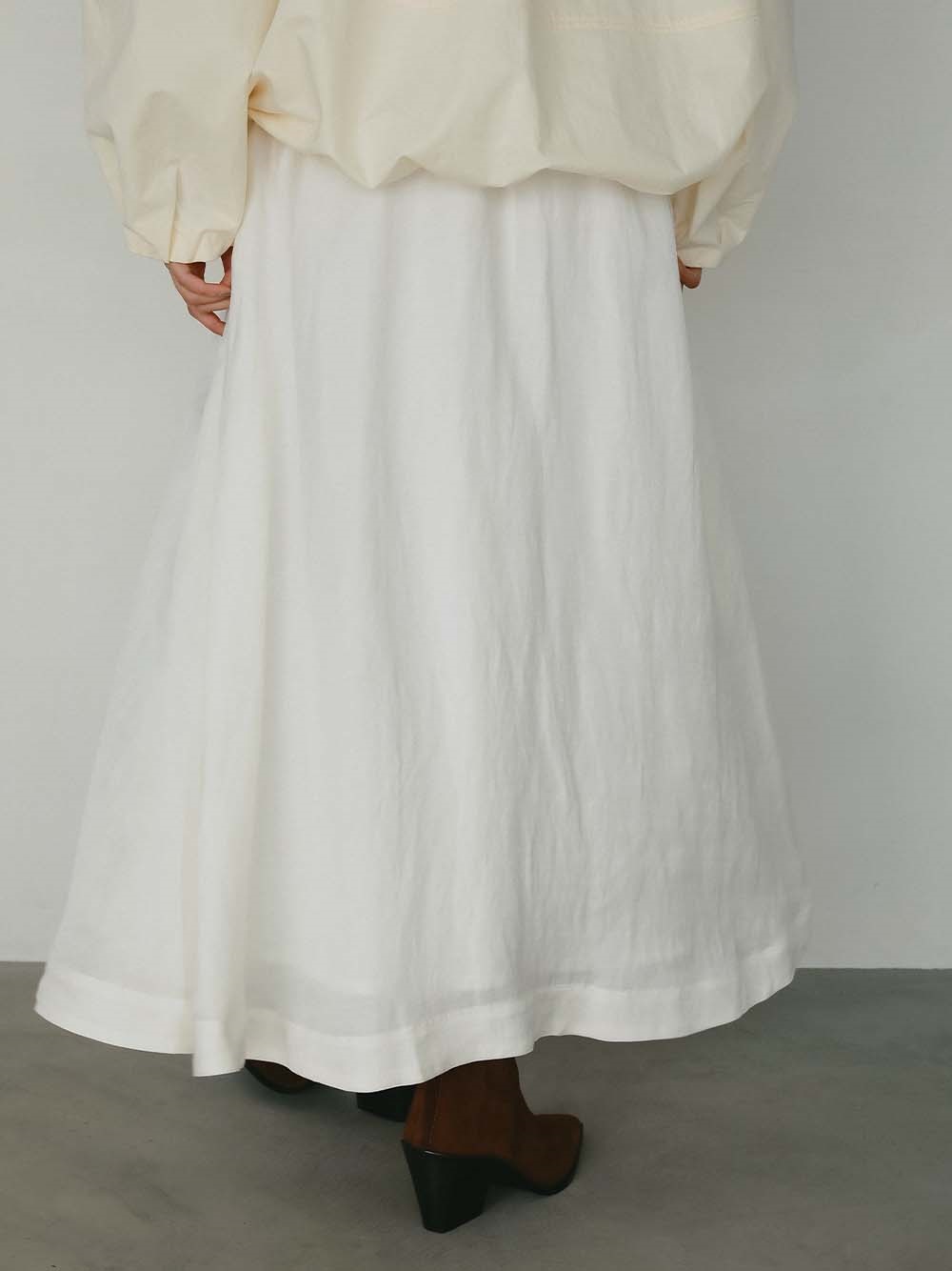 経糸にヴィスコース、緯糸にリネンを使用したツイル素材のフレアスカート。