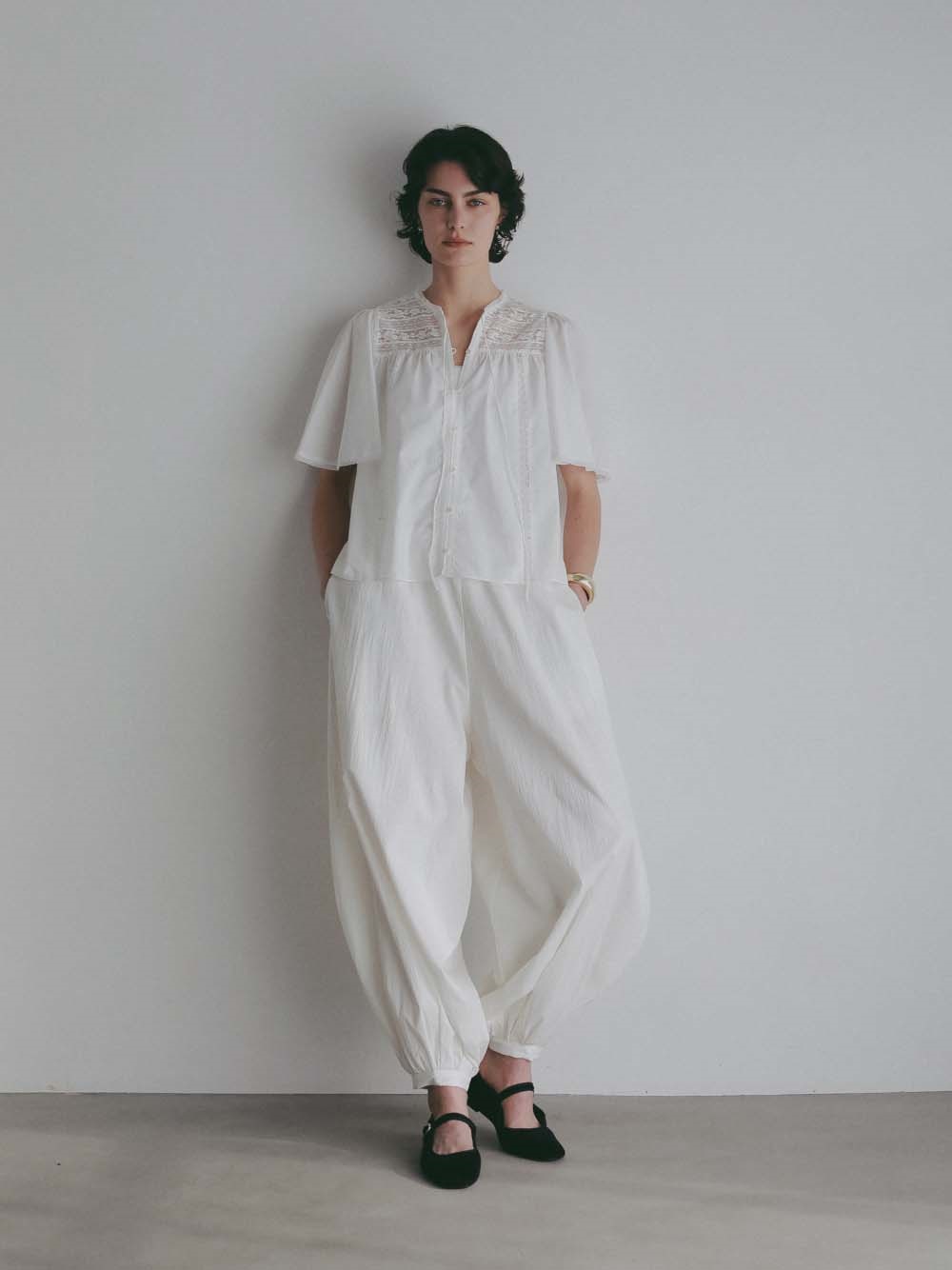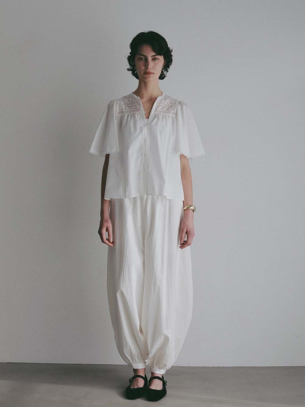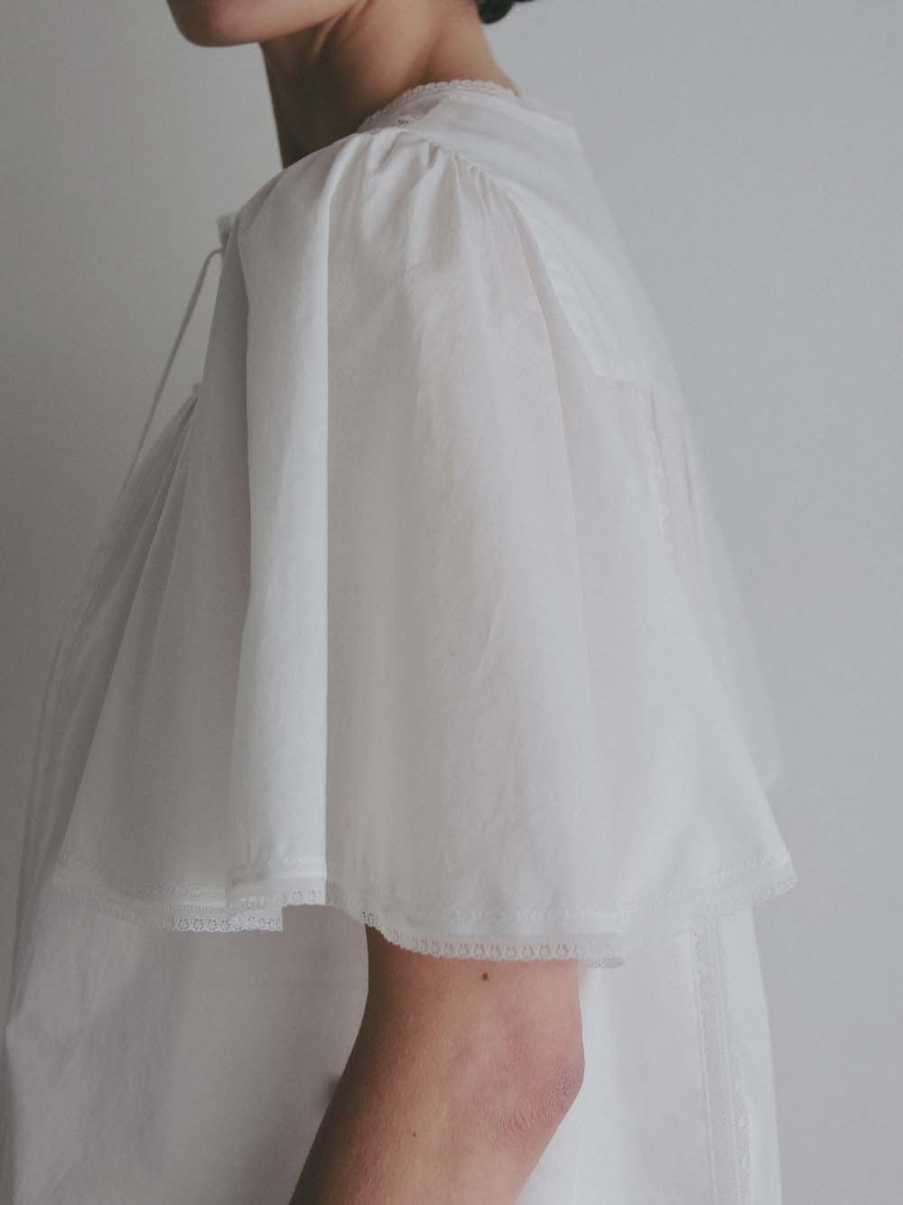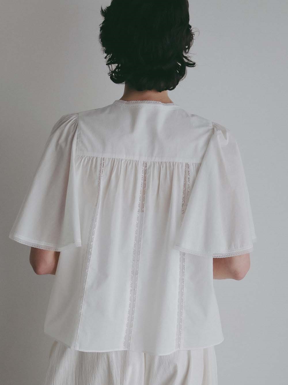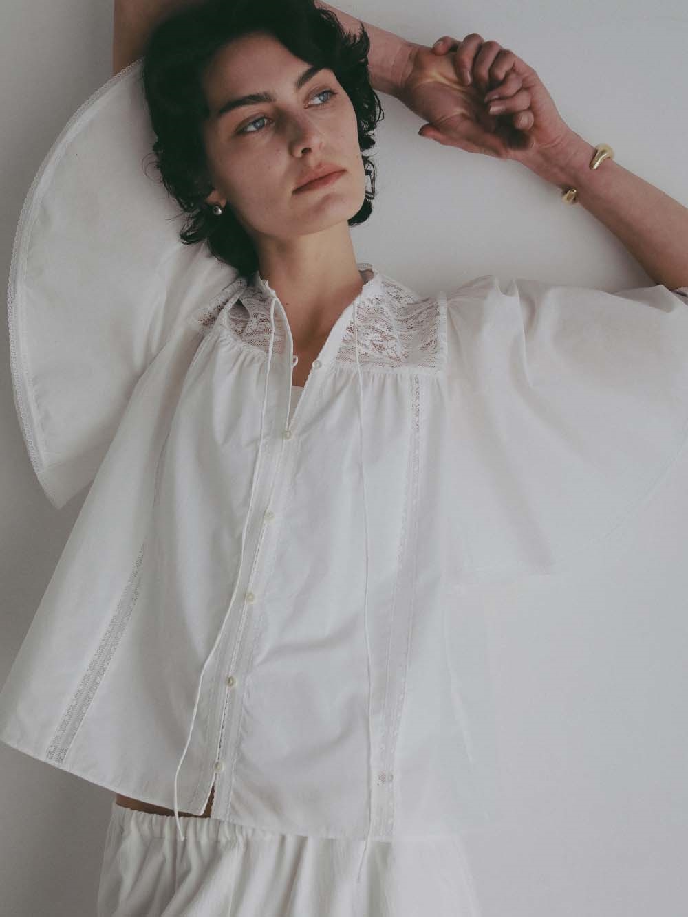 • <予約>レースコンビフレアスリーブブラウス(02ホワイト-フリー-[Preorder] 5月下旬頃のお届け)