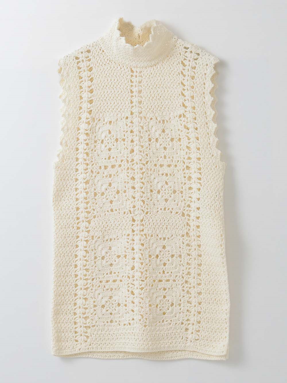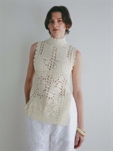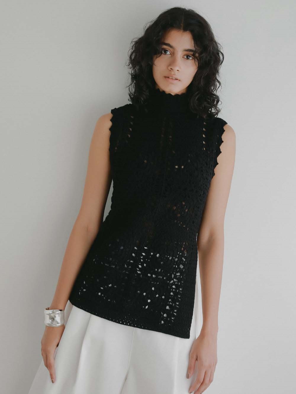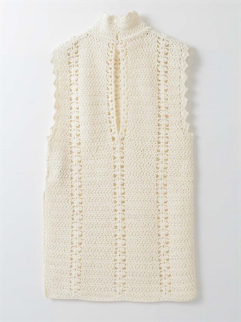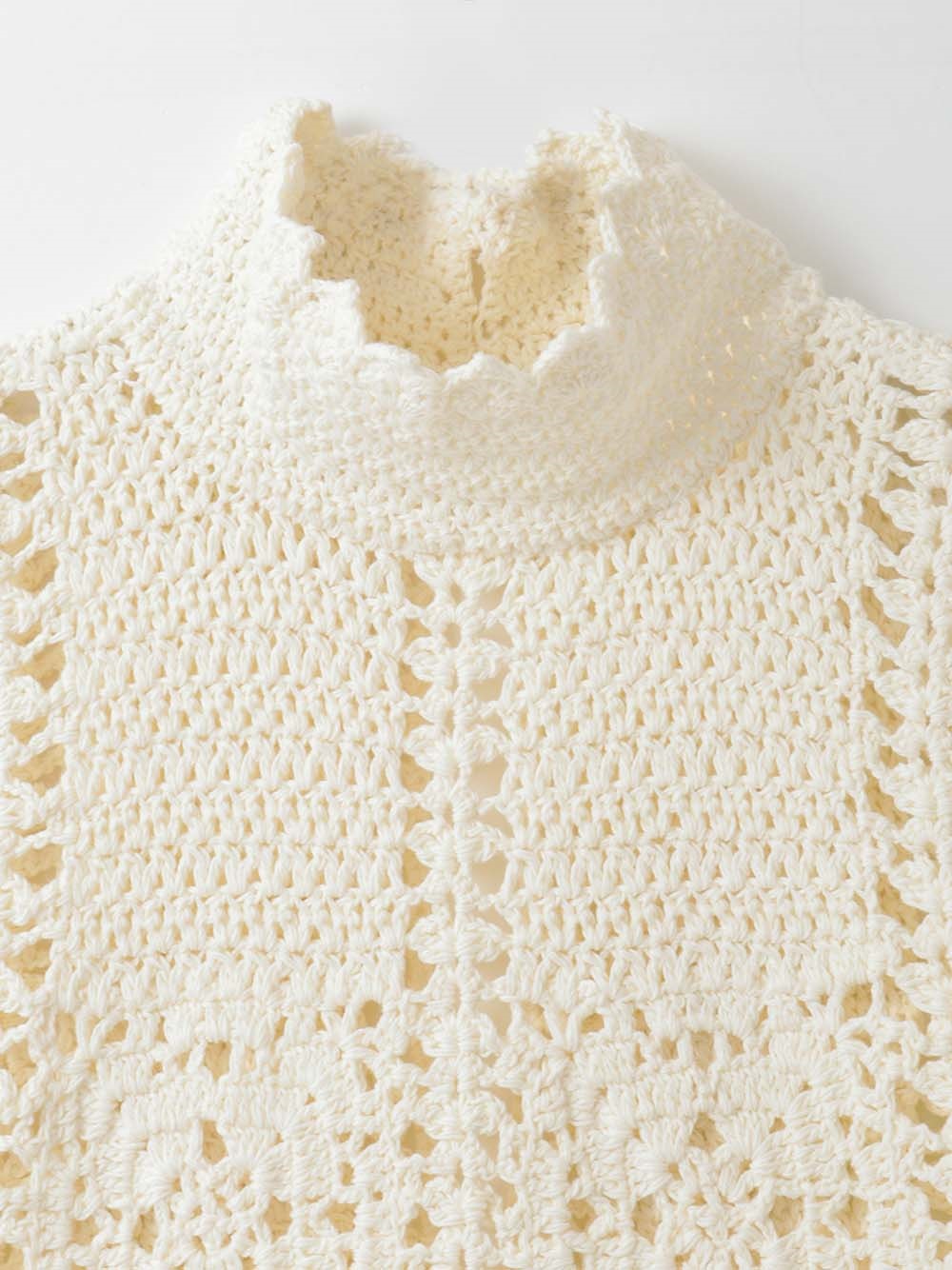 繊細なクロッシェ編みが特徴のニットブラウス。
