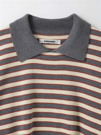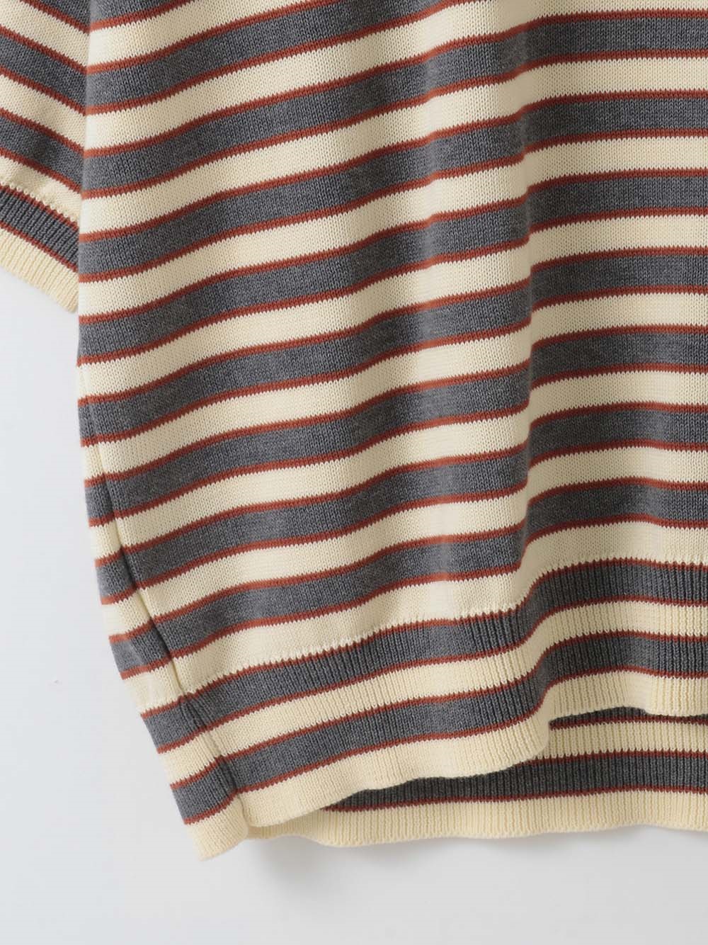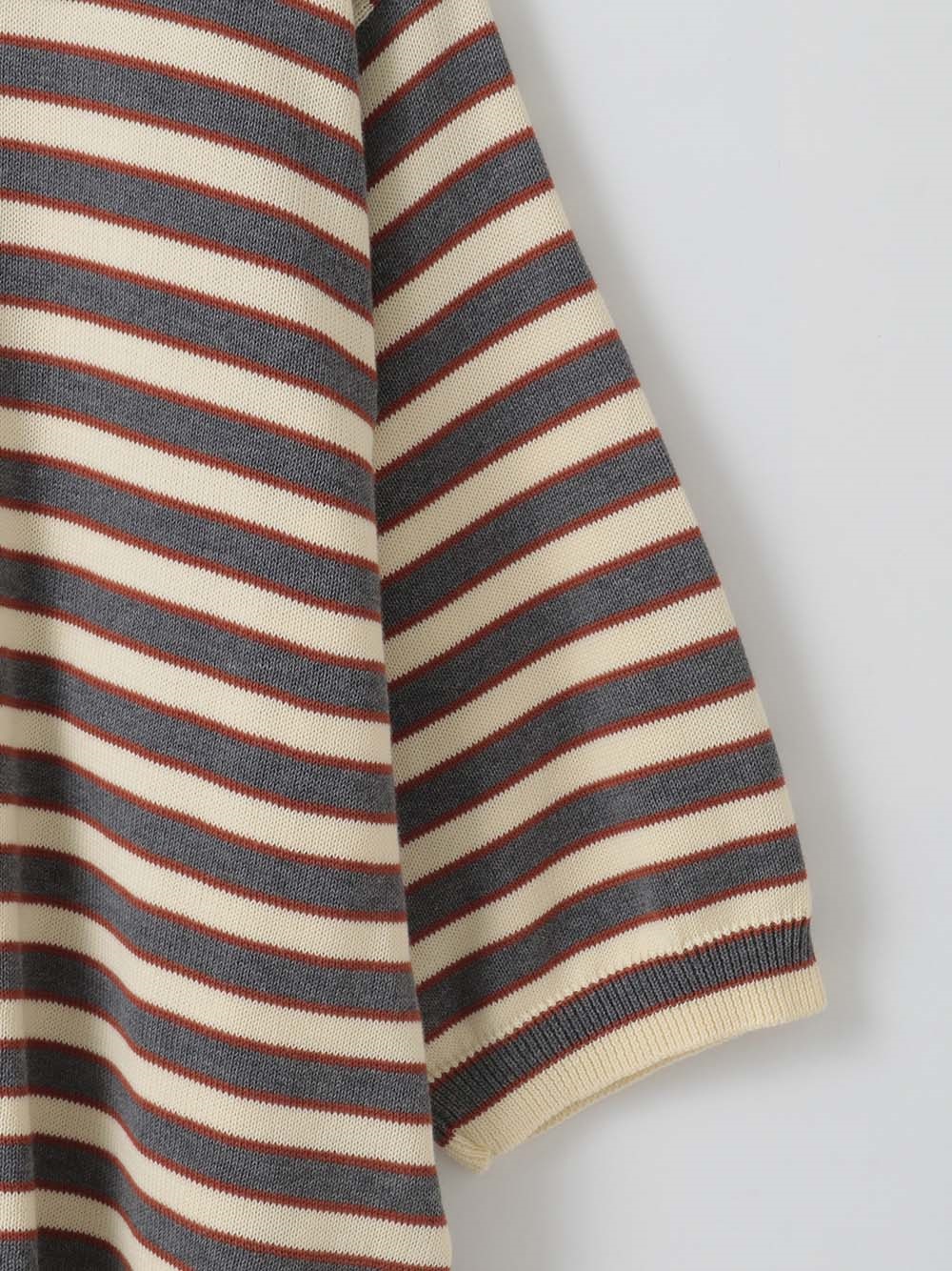 グレー・テラコッタ・バニラの3色を使用したボーダー柄のプルオーバー。