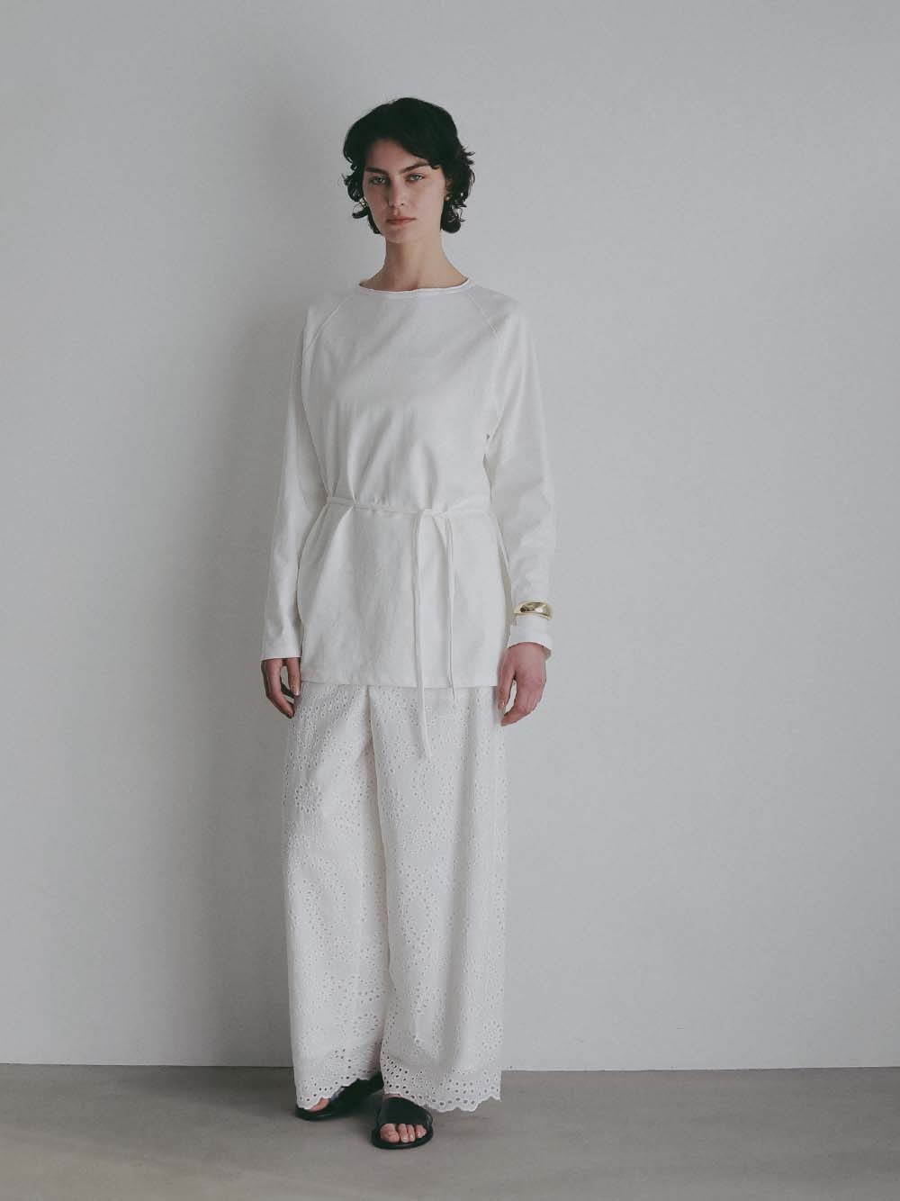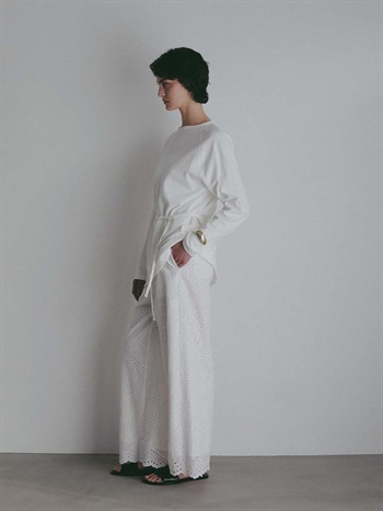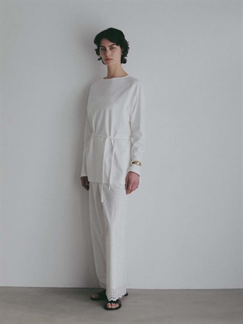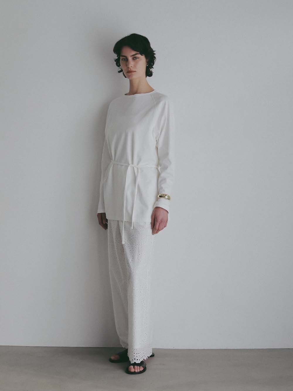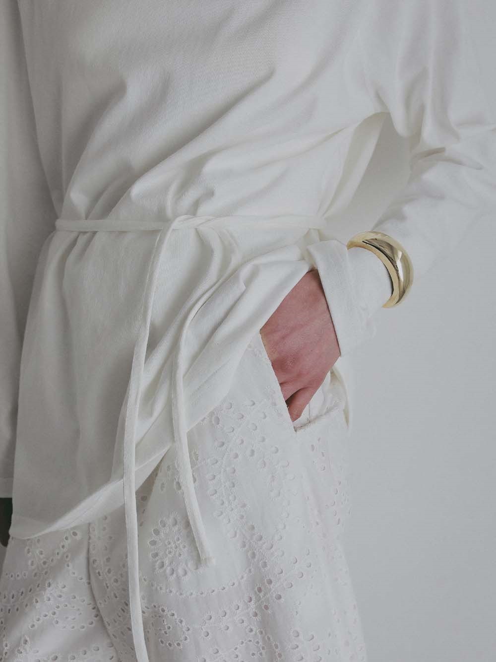 ウエスト紐でマークし、ブラウジングさせるとこなれ感がアップします。
