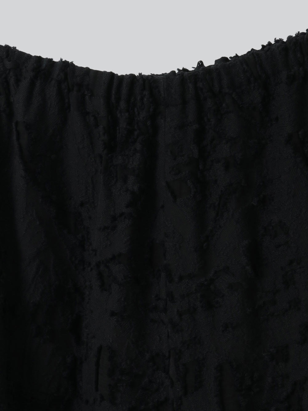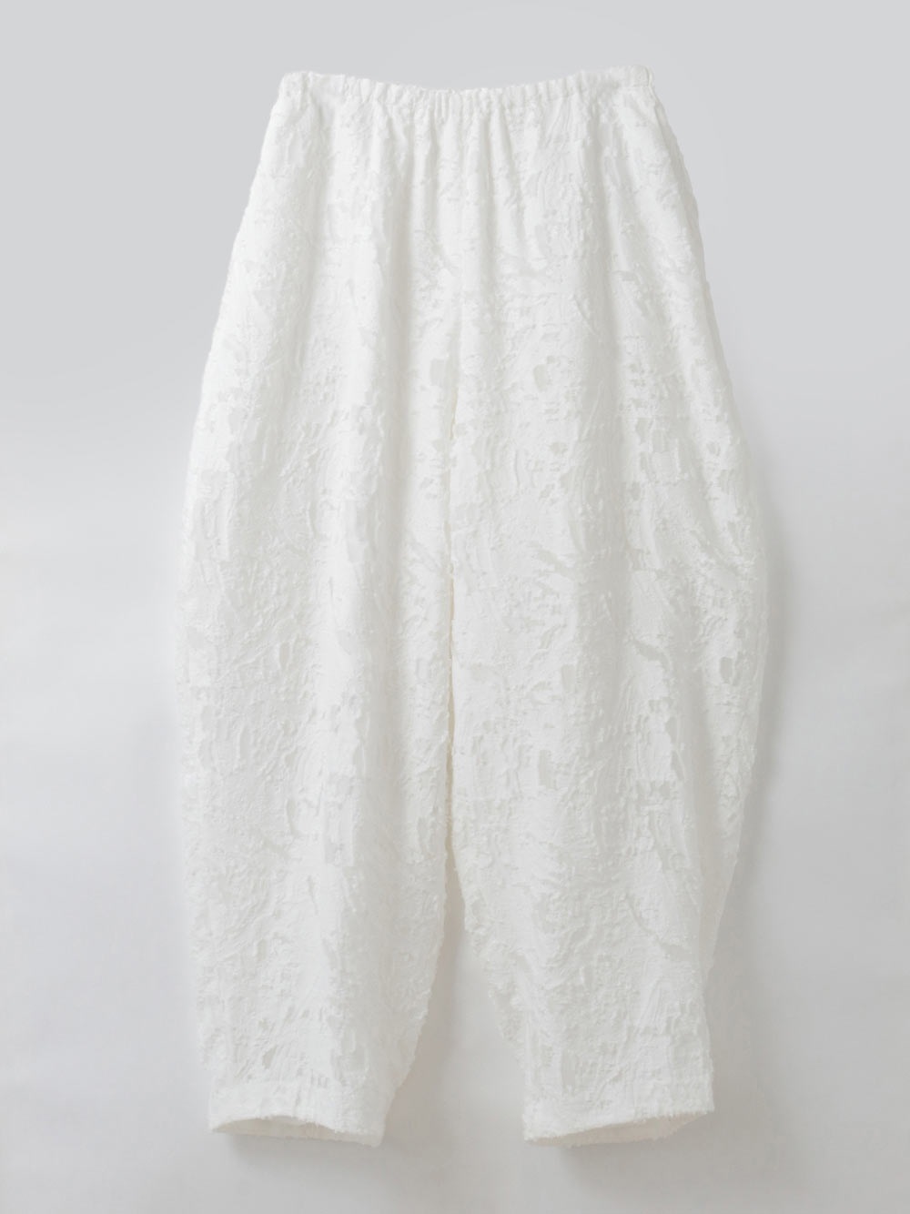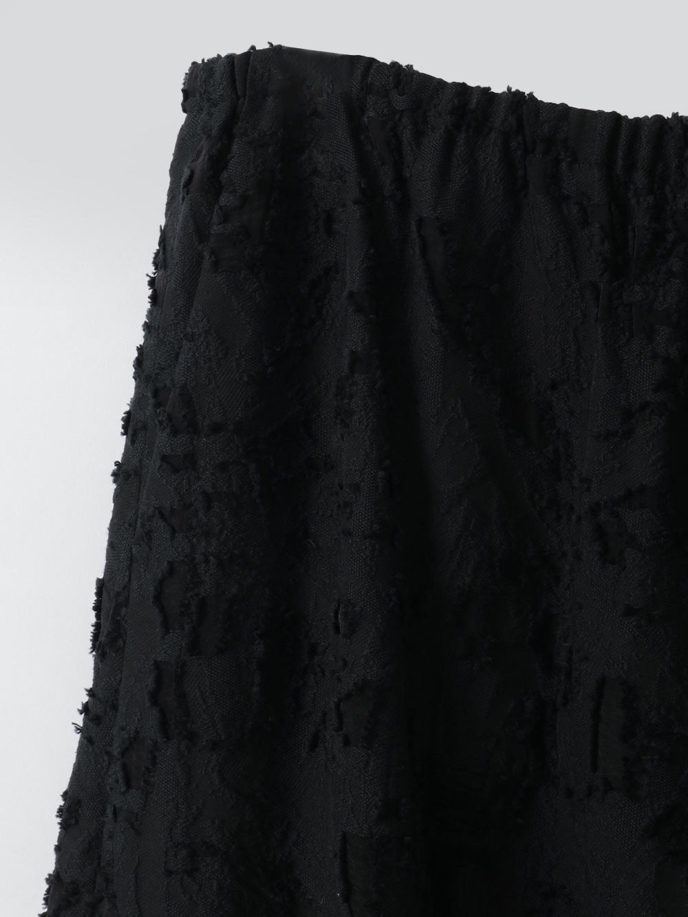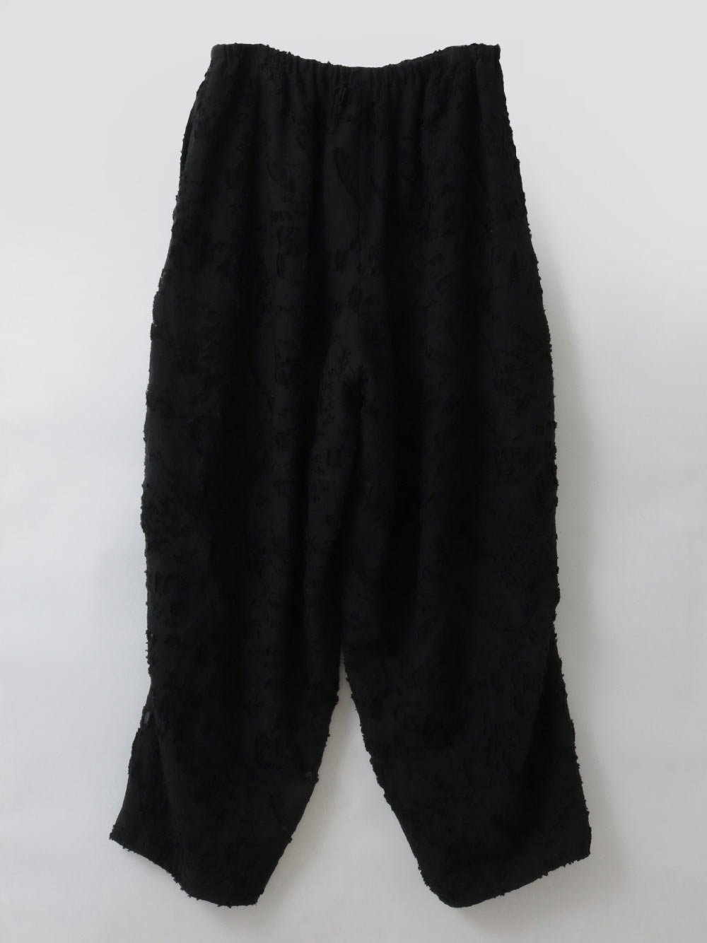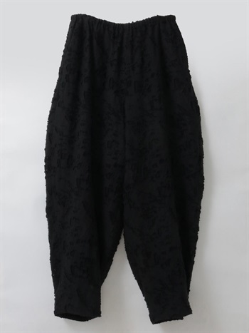 短い毛足による表情が特徴的なジャカードを使用したデザインパンツ。