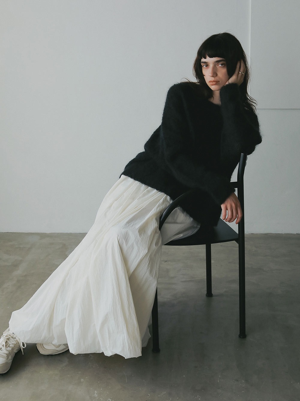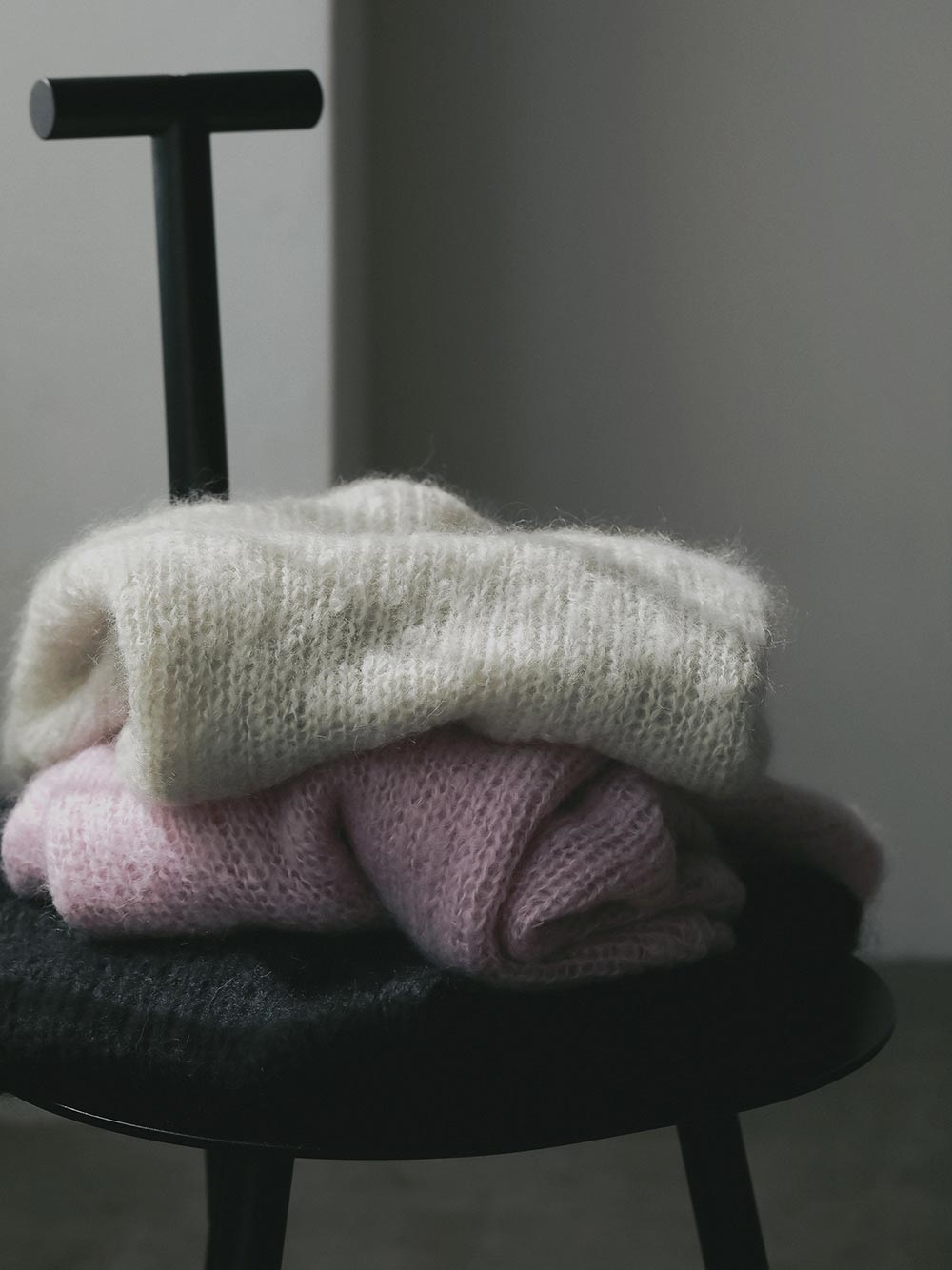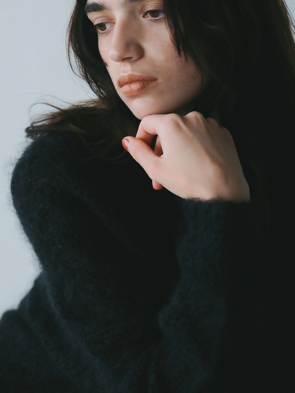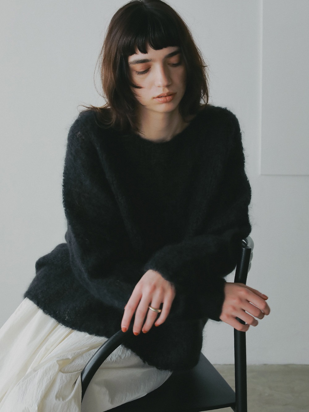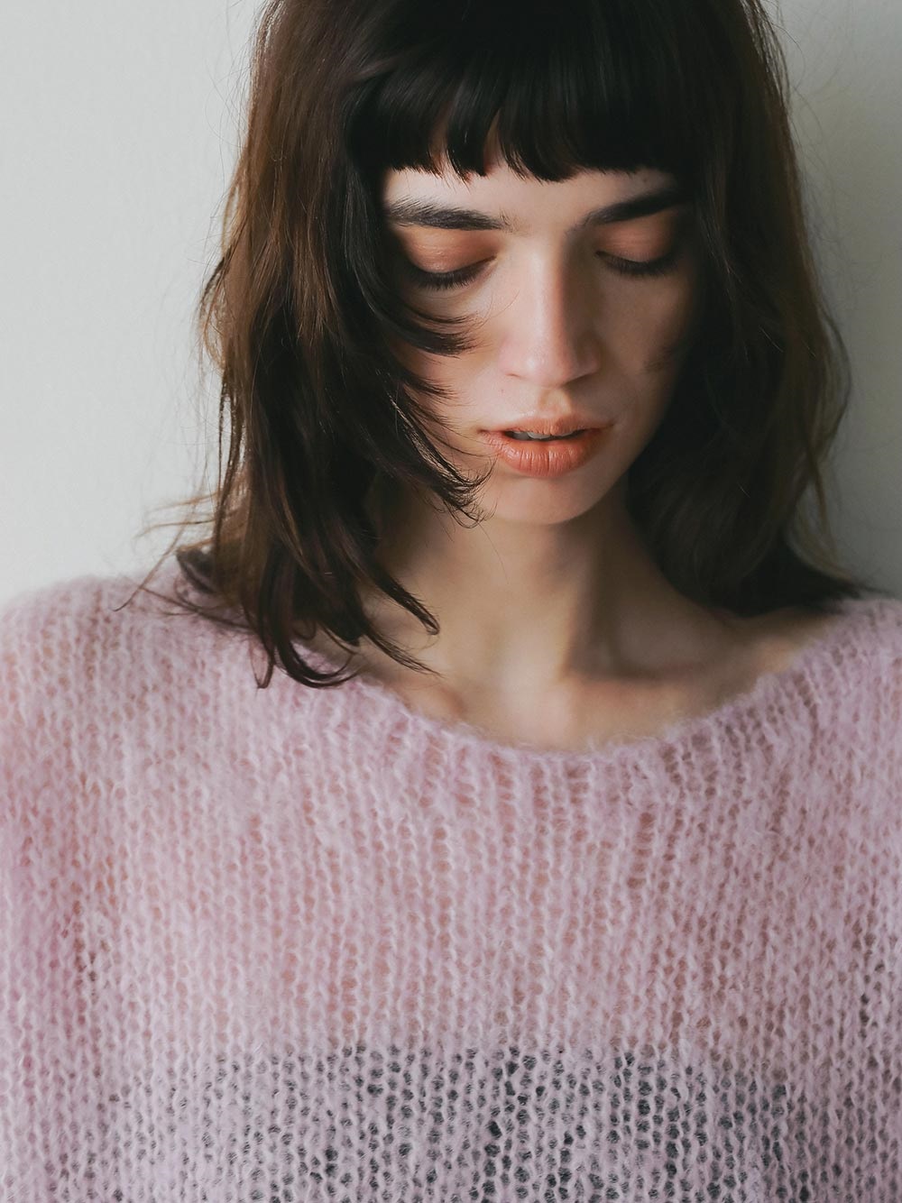 昨年から好評のモヘア高混率の風合いが美しいニットプルオーバー。通常のモヘアよりも1本1本が柔らかいキッドモヘアが86%使用された糸で編み上げた贅沢な1枚。メッシュ編みなので見た目以上に軽く、真冬の手前から着用できます。飽きのこないベーシック1枚だからこそサイジングや細かな仕様にこだわり、着用するほど良さを感じていただけます。ヨコに広めのリラックスしたシルエットは身体から離れる大人っぽい1枚。甘すぎない青みピンクカラーなど使いやすい色展開もポイント