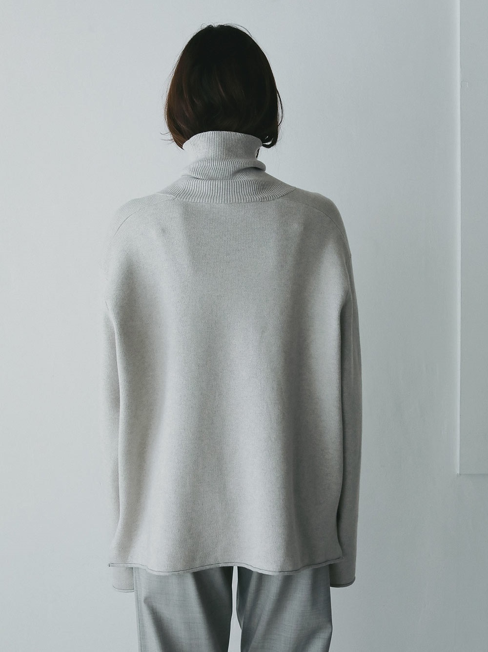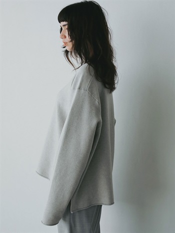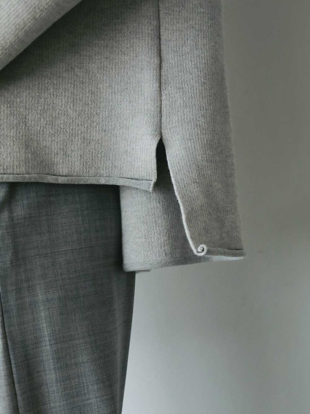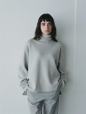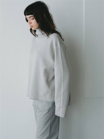 コットンカシミヤのスムースニットプルオーバー。カットソー感覚で着られる適度な厚みと軽さが特徴でありながらニット特有のハリ感でカジュアルすぎず綺麗めに着用いただけます。シンプルな見た目で飽きのこないデザインですが、サイズやバランスにこだわりどんなボトムにも合わせられる万能な1枚