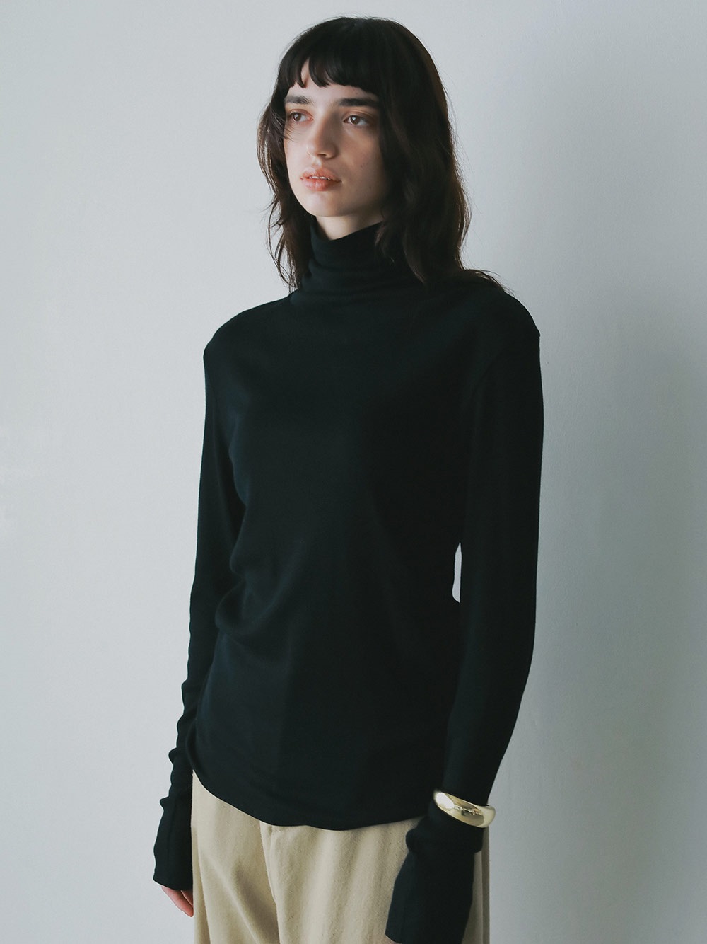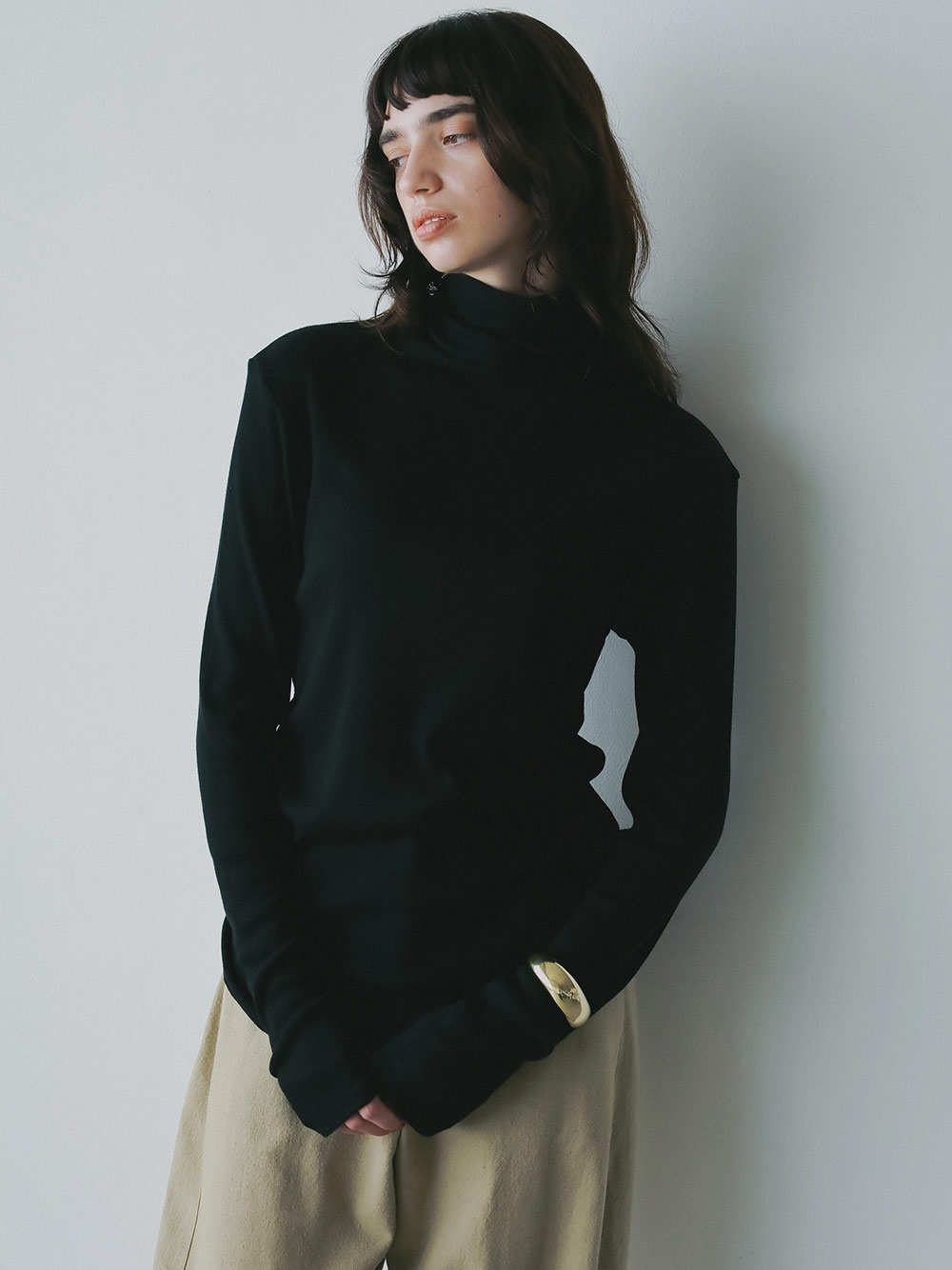 コットンモダールの柔らかなカットソー素材のタートルネックプルオーバー。厚すぎない素材感で、ニットなどのトップスにインしてご着用いただけます。スタイリングのアクセントになる、重宝する1枚です。