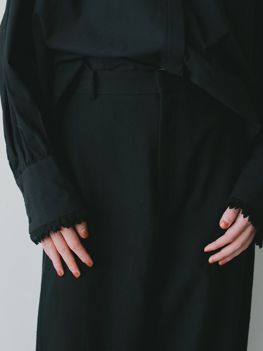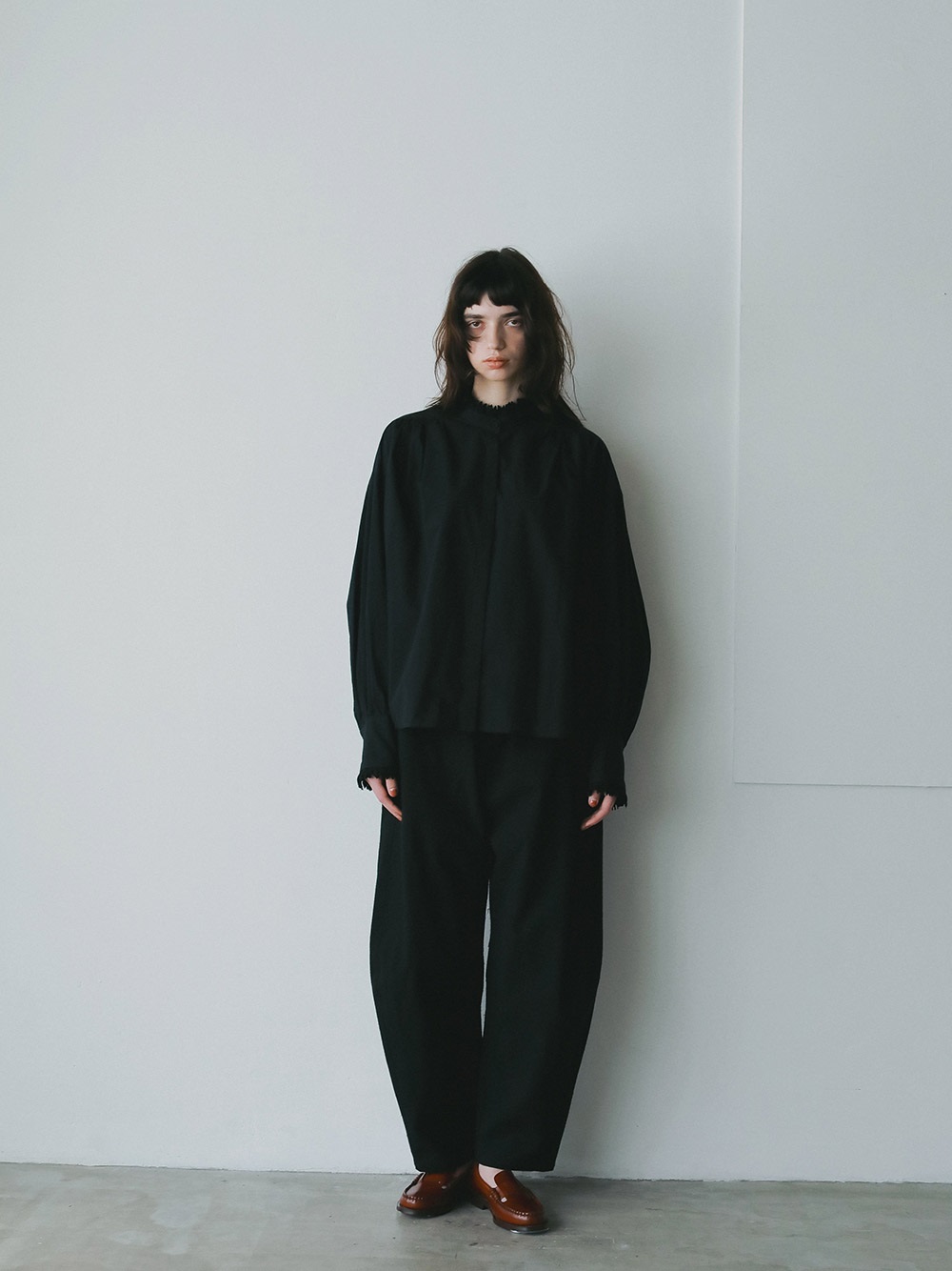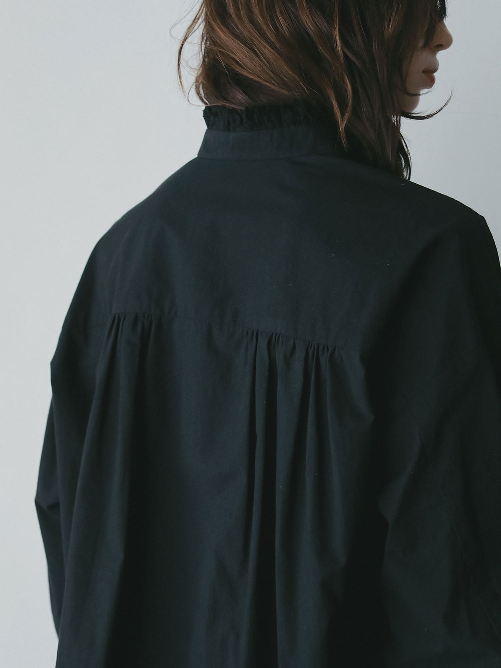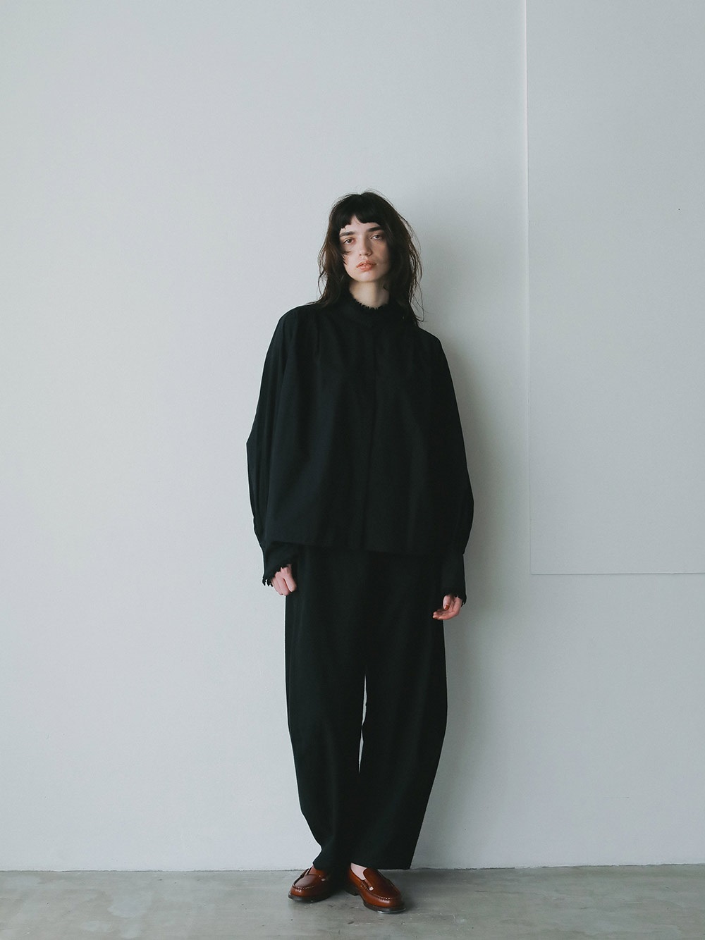 ヴィンテージのブラウスから発想を得たブラウス。衿とカフスにレースをあしらい雰囲気のあるクラシカルなアイテムに仕上げました。ニットなどのインナーとして衿や袖のレースをのぞかせるスタイルもおすすめです。