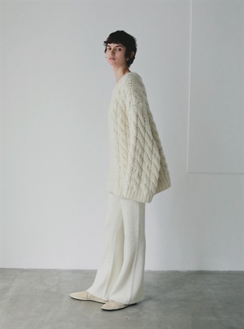 WOOL混率65%で温かみとナチュラルな表情感のある糸を使用したカーディガン。膨らみと肉感を出し程よくフォルムが出るよう編みたてました。ひざ下から裾にかけて自然と広がるフレアシルエットでスタイルアップも叶えながら洗練された印象に。同素材のニットジャケットとのスタイリングもおすすめです。