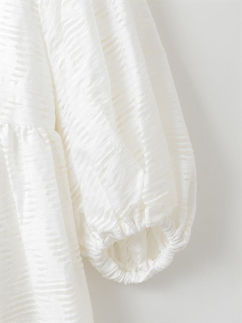 素材のハリ感を活かしたボリュームスリーブが特徴的な1枚。