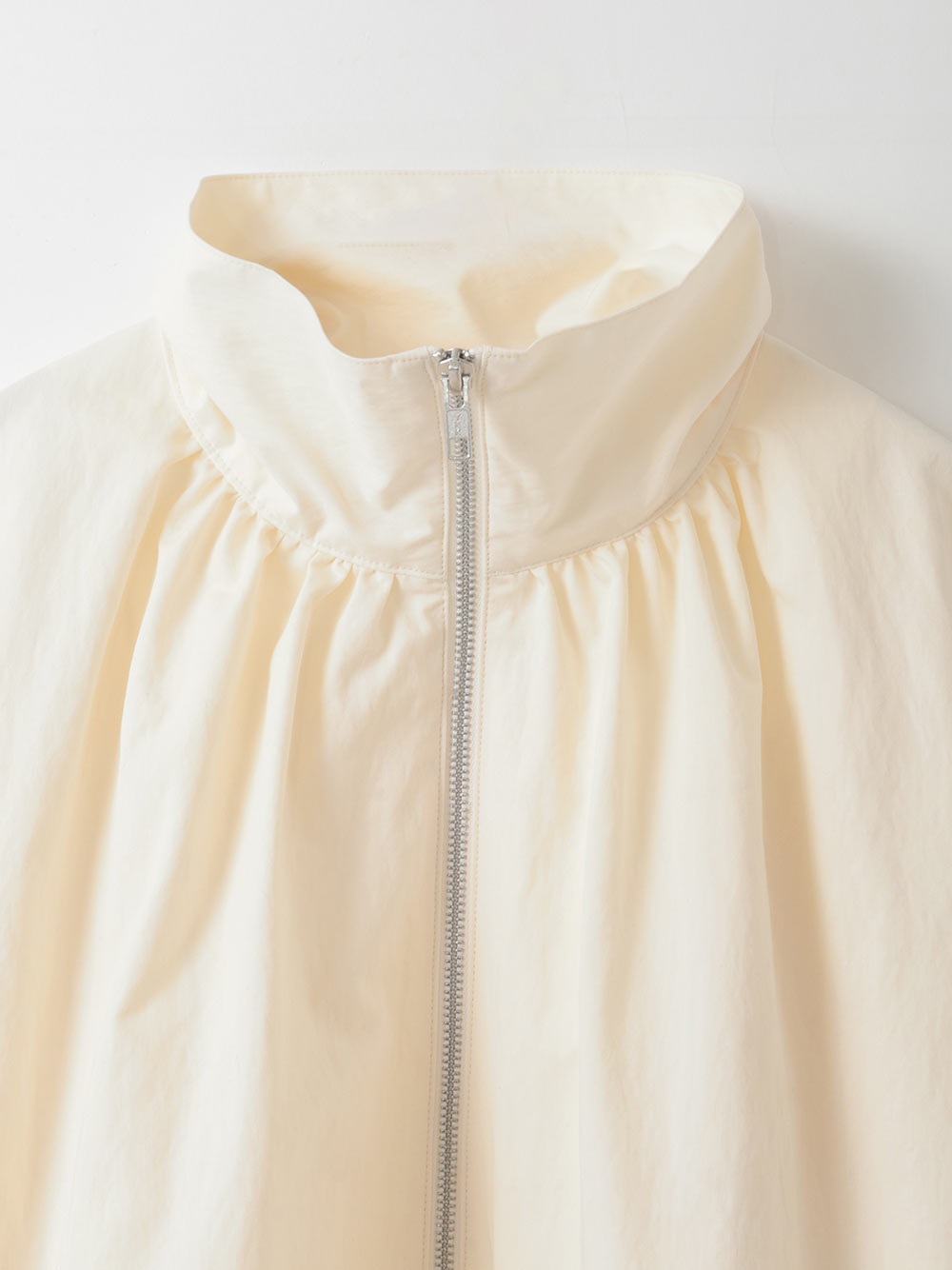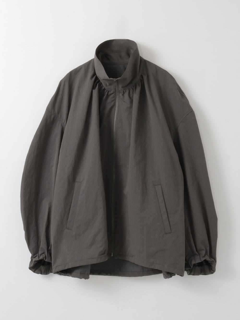 ハリのある高密度のコットンナイロンでデザインブルゾンを作りました。