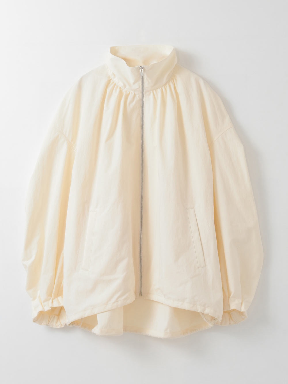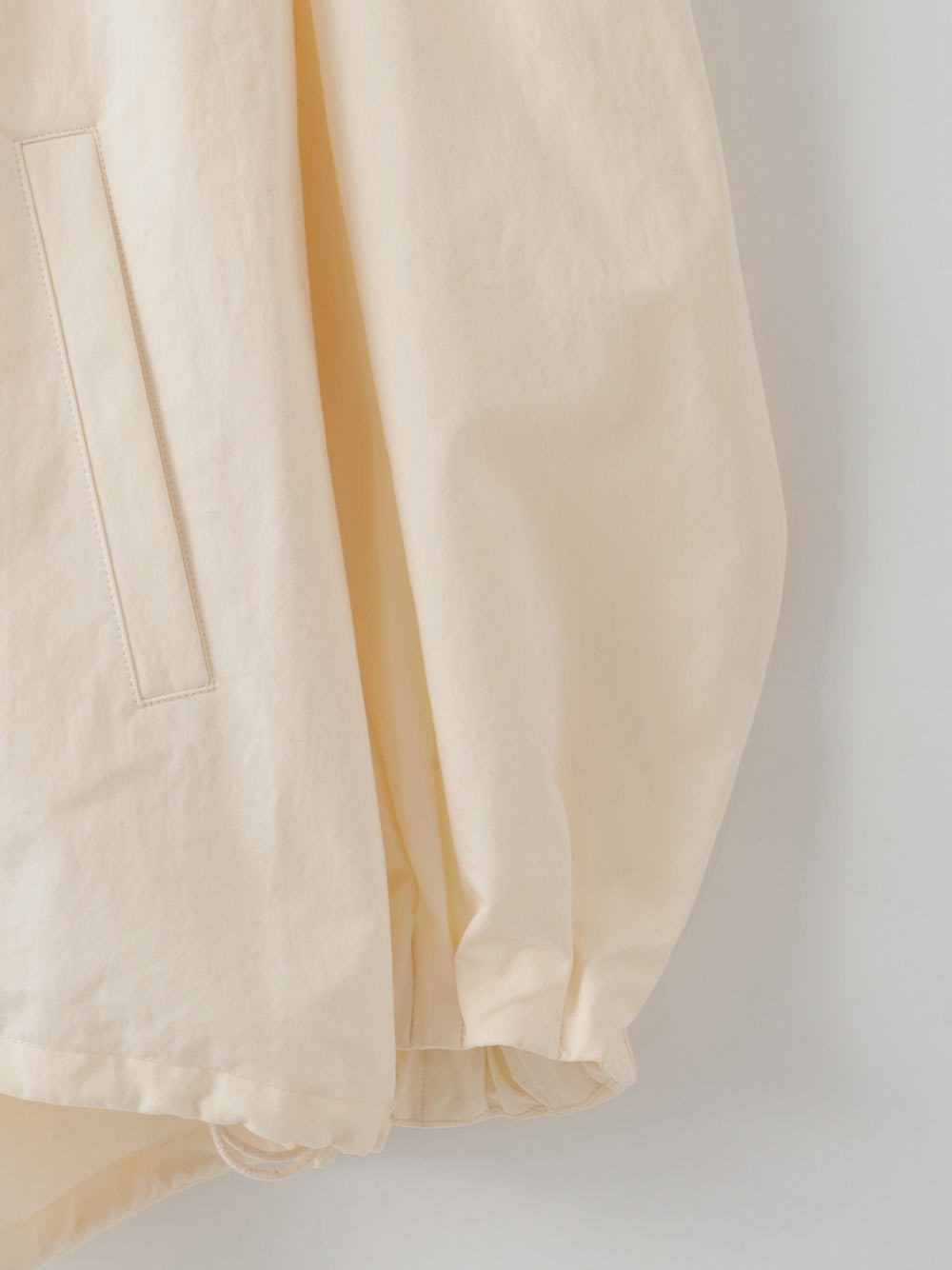 裾のゴムコードを絞ることでよりシルエットが際立つので絞って着用をおすすめします。