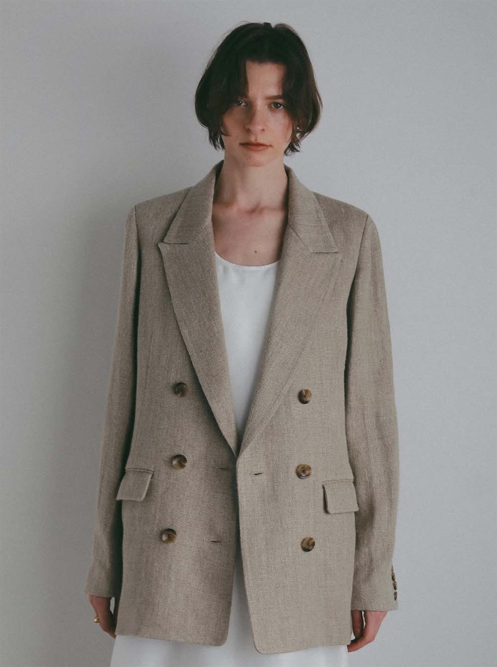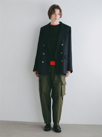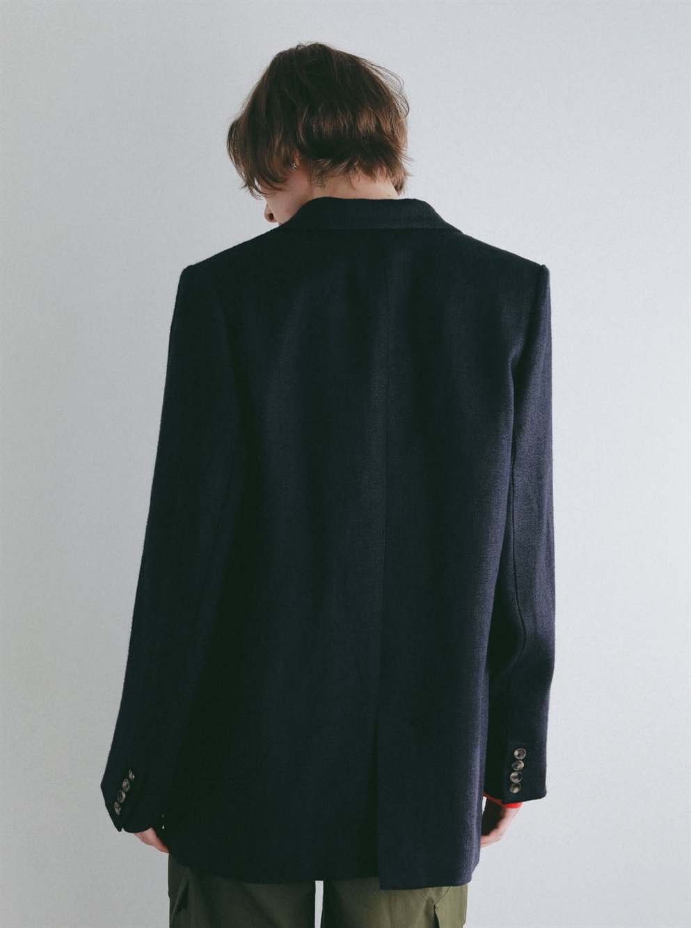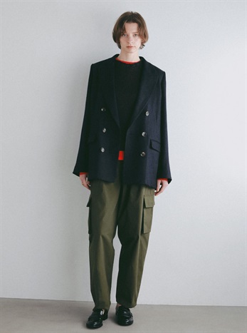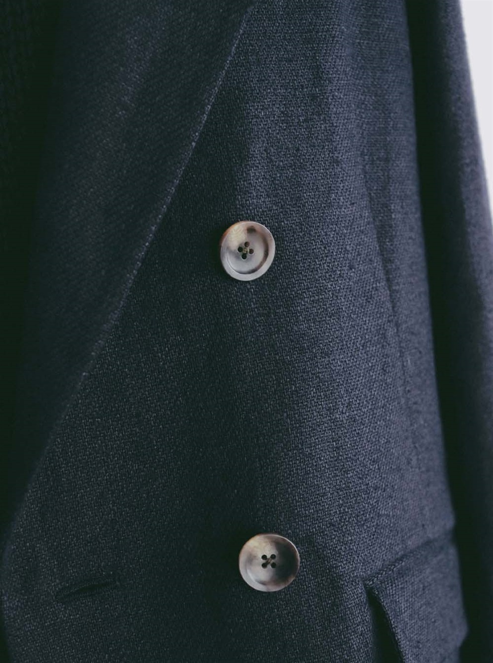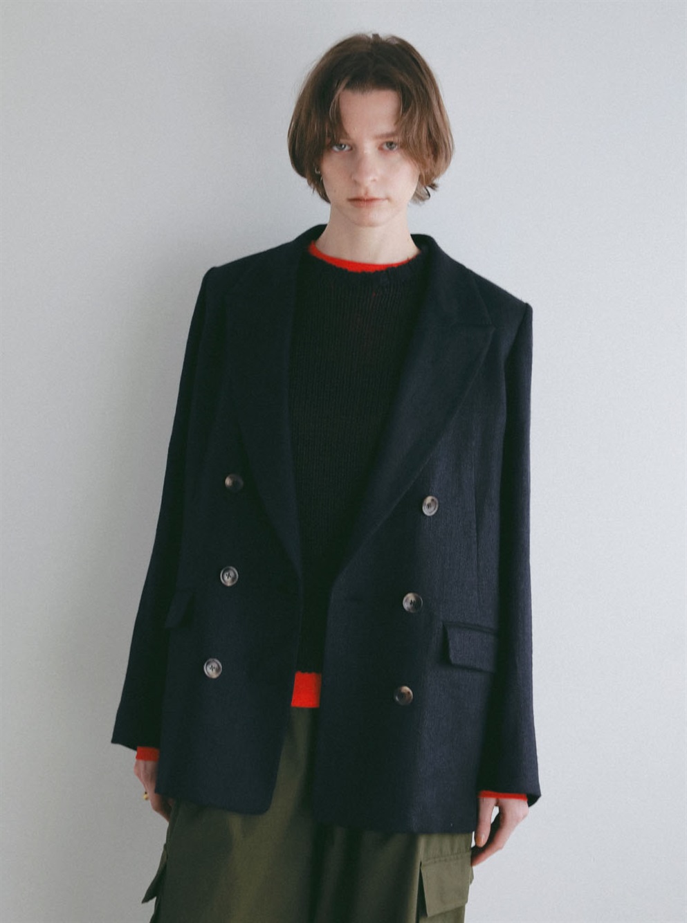 ウール100%の梳毛素材を使用したダブルジャケット。