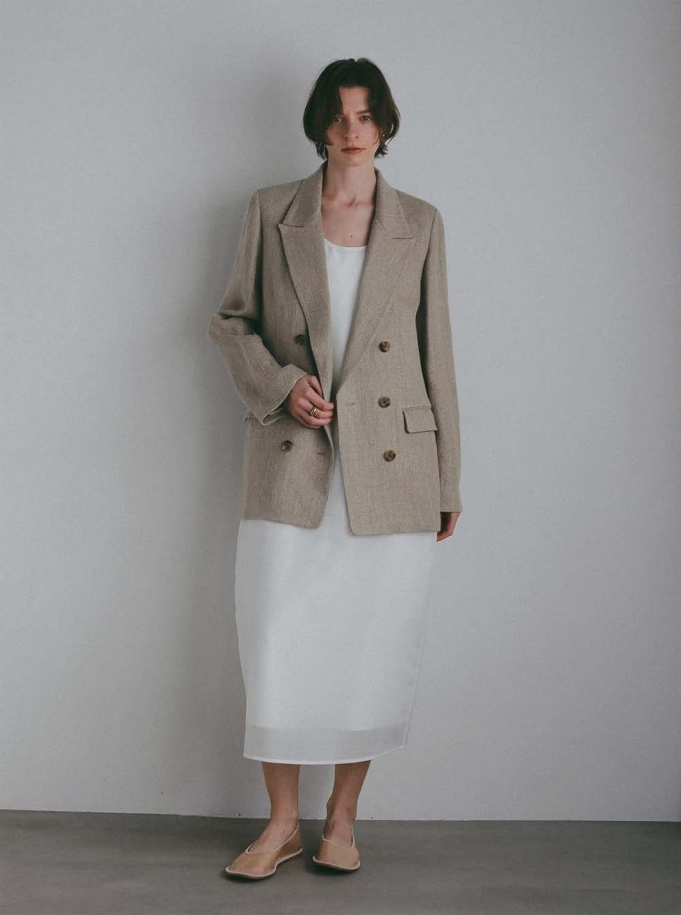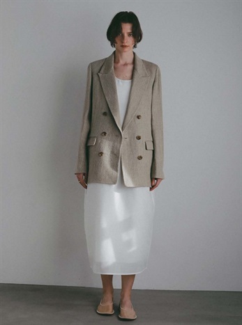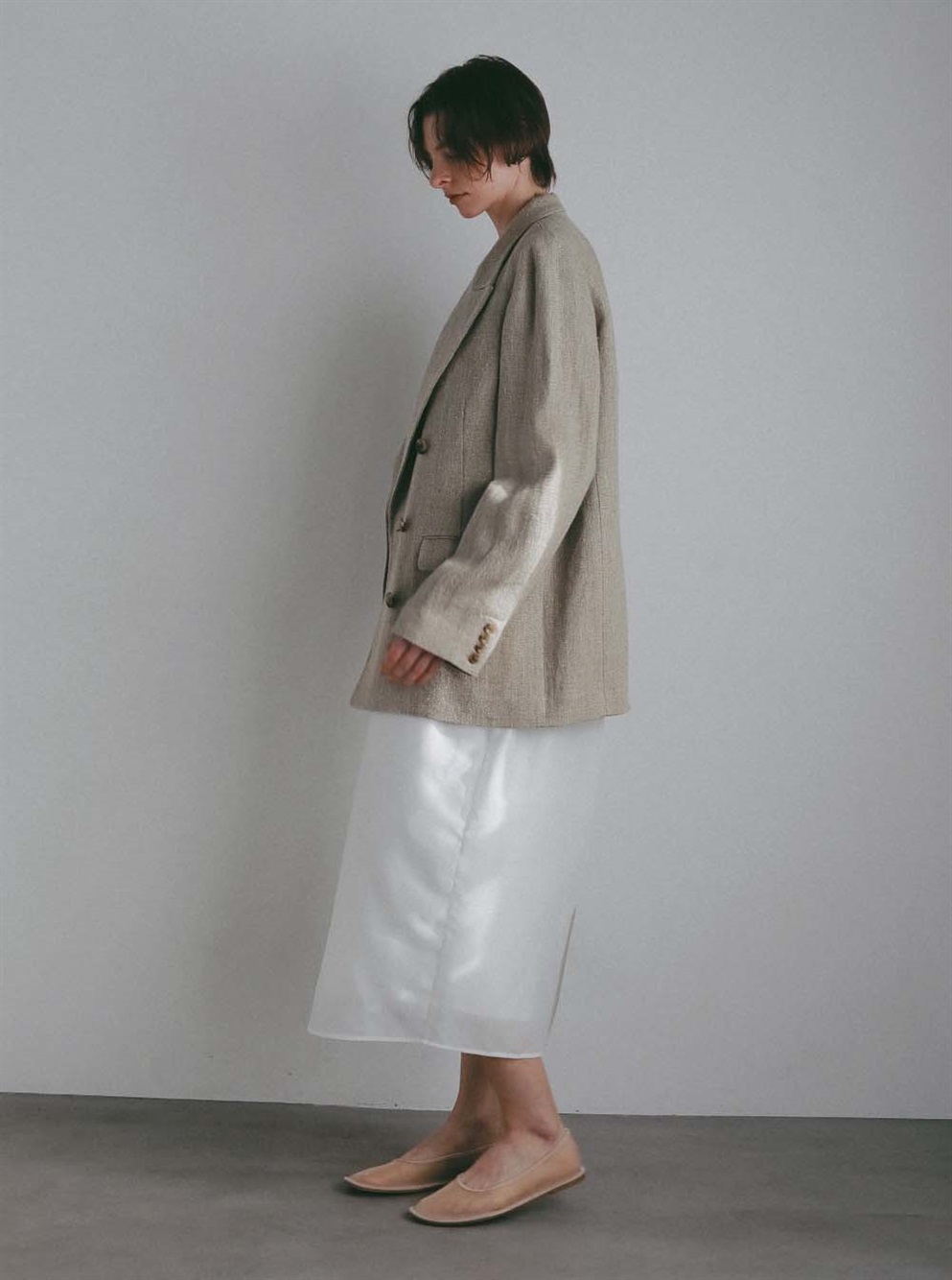 ほどよくリラックスしたサイズ感ですが身体から離れすぎずボトムも選ばない重宝する1枚。同素材のパンツとセットアップでもご着用いただけます。