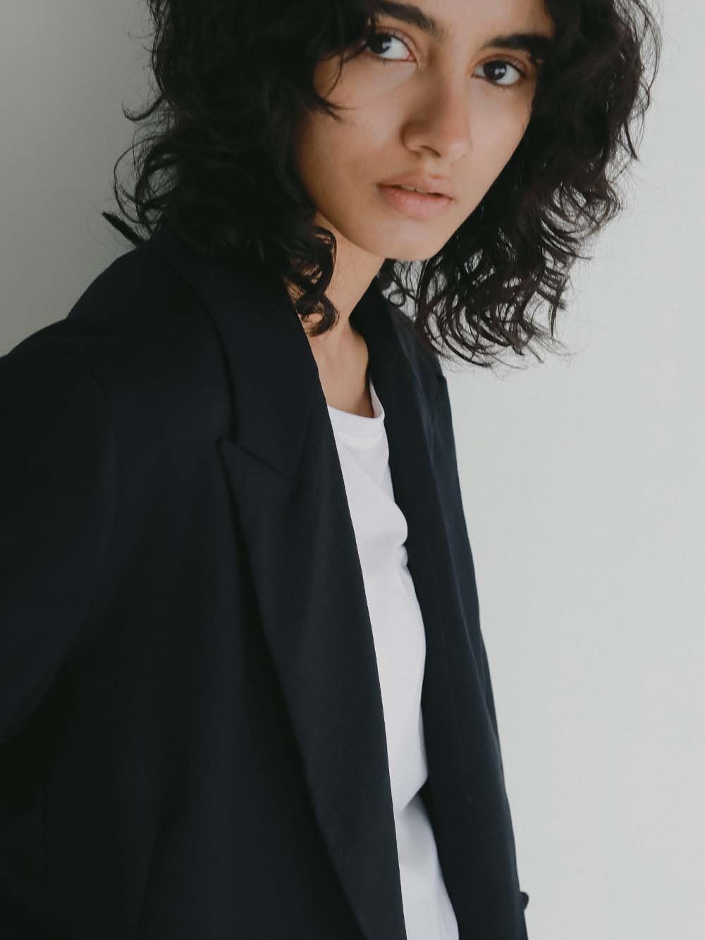 ほどよくリラックスしたサイズ感ですが身体から離れすぎずボトムも選ばない重宝する1枚。同素材のパンツとセットアップでもご着用いただけます。