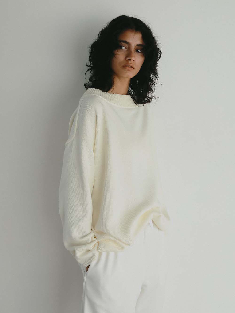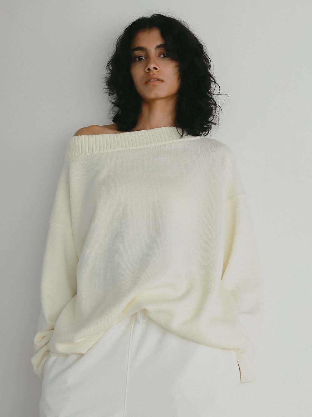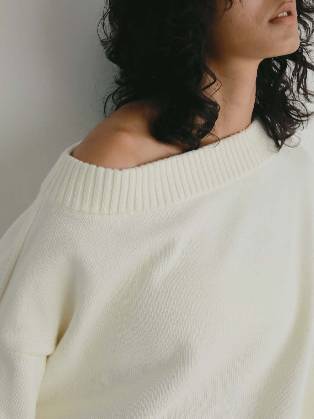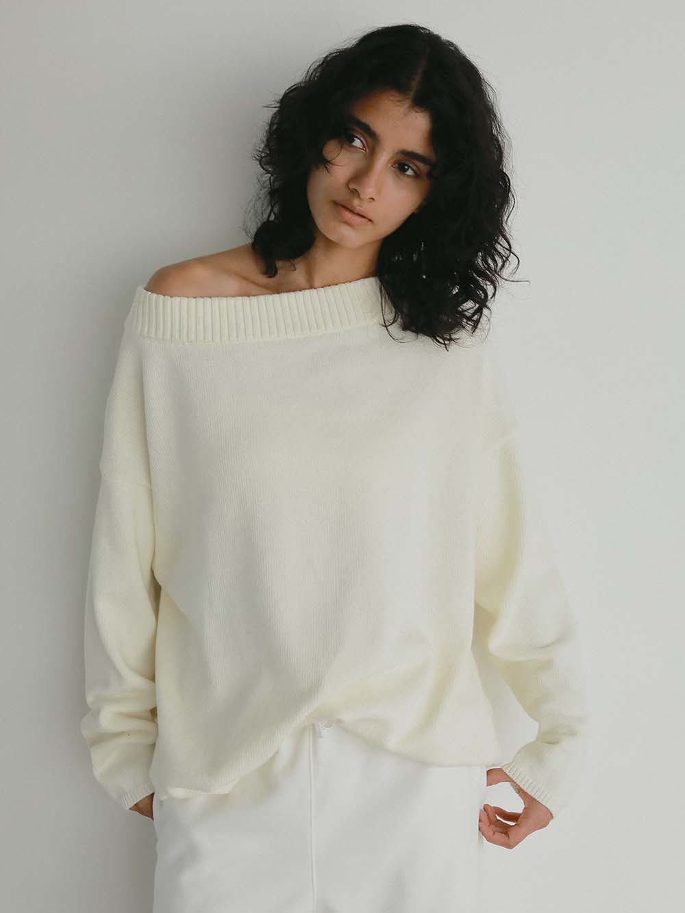 オフショルにしてもご着用いただけ、デコルテをみせて抜け感のあるスタイリングやシャツブラウスとのレイヤードスタイルもお楽しみいただけます。