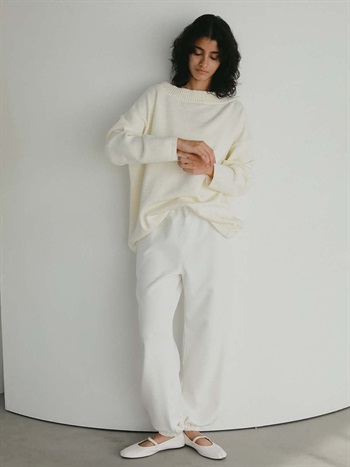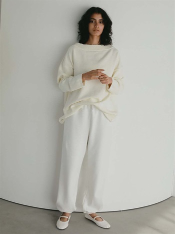 ゆったりとしたシルエットで抜け感のある雰囲気に仕上げたニットプルオーバー。コットン・ナイロンの糸を編みたてておりナチュラルな表情感は春先に重宝する1枚。