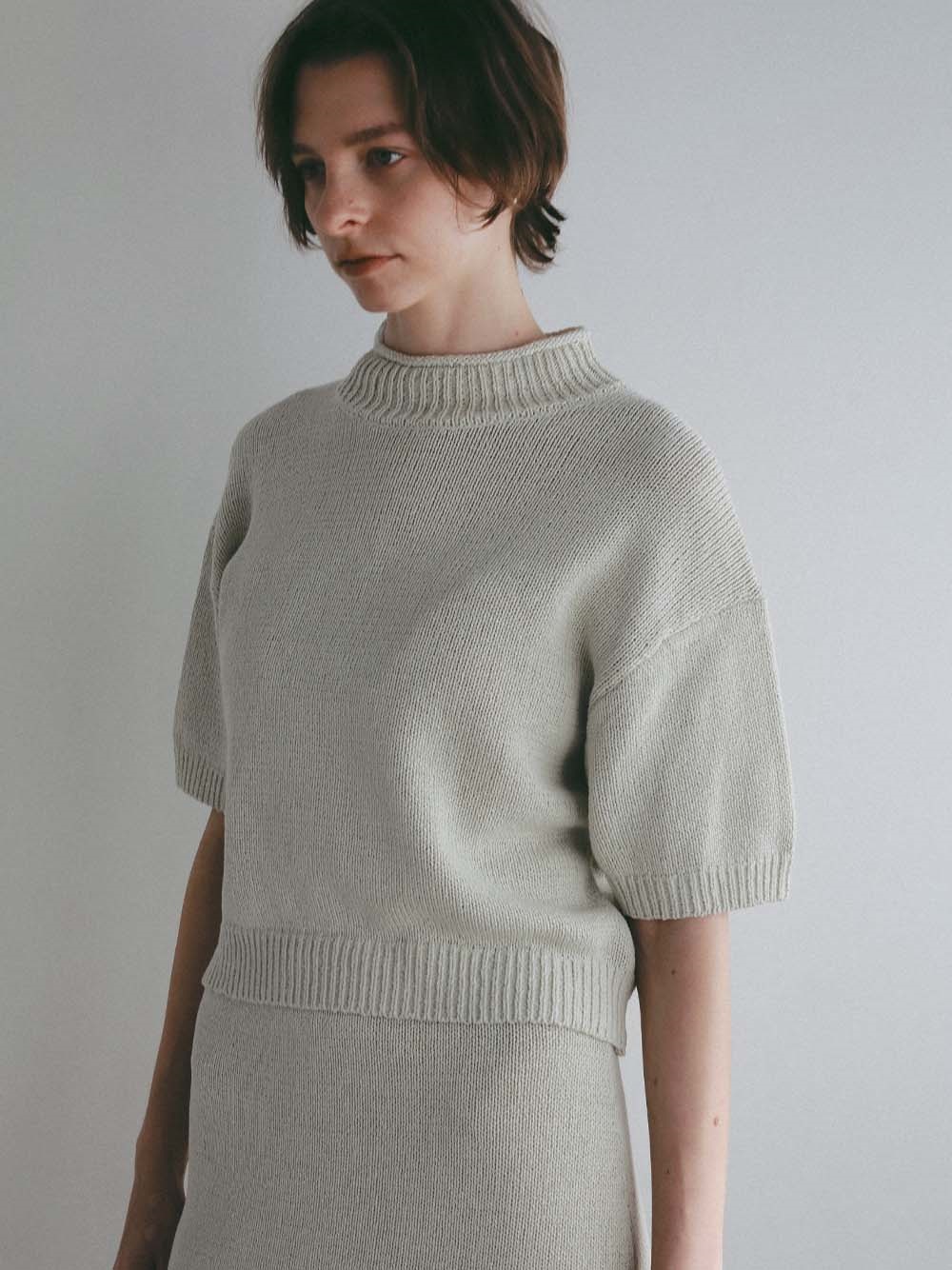 コットンのテープヤーンで編みたてたニットプルオーバー。