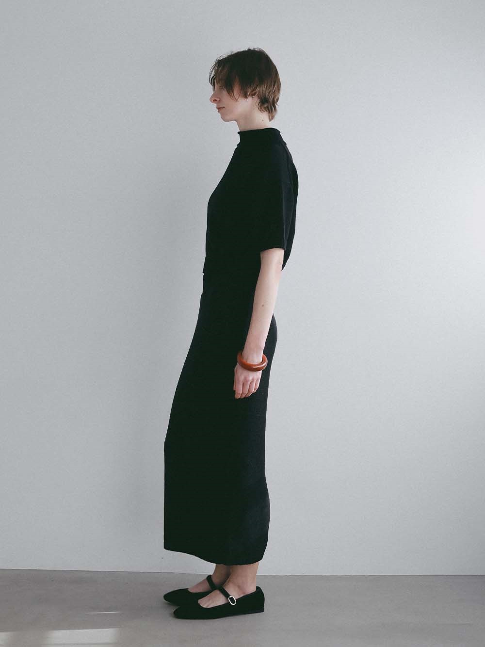 同じ素材のスカートとセットアップ着用も可能です。
