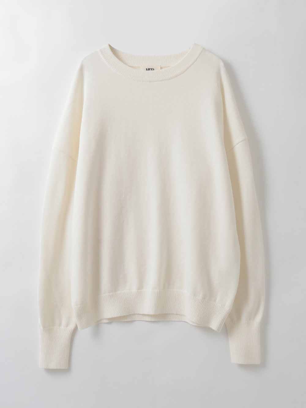 クリアな質感とスッキリとした編地が特徴のベーシッククルーネックニット。