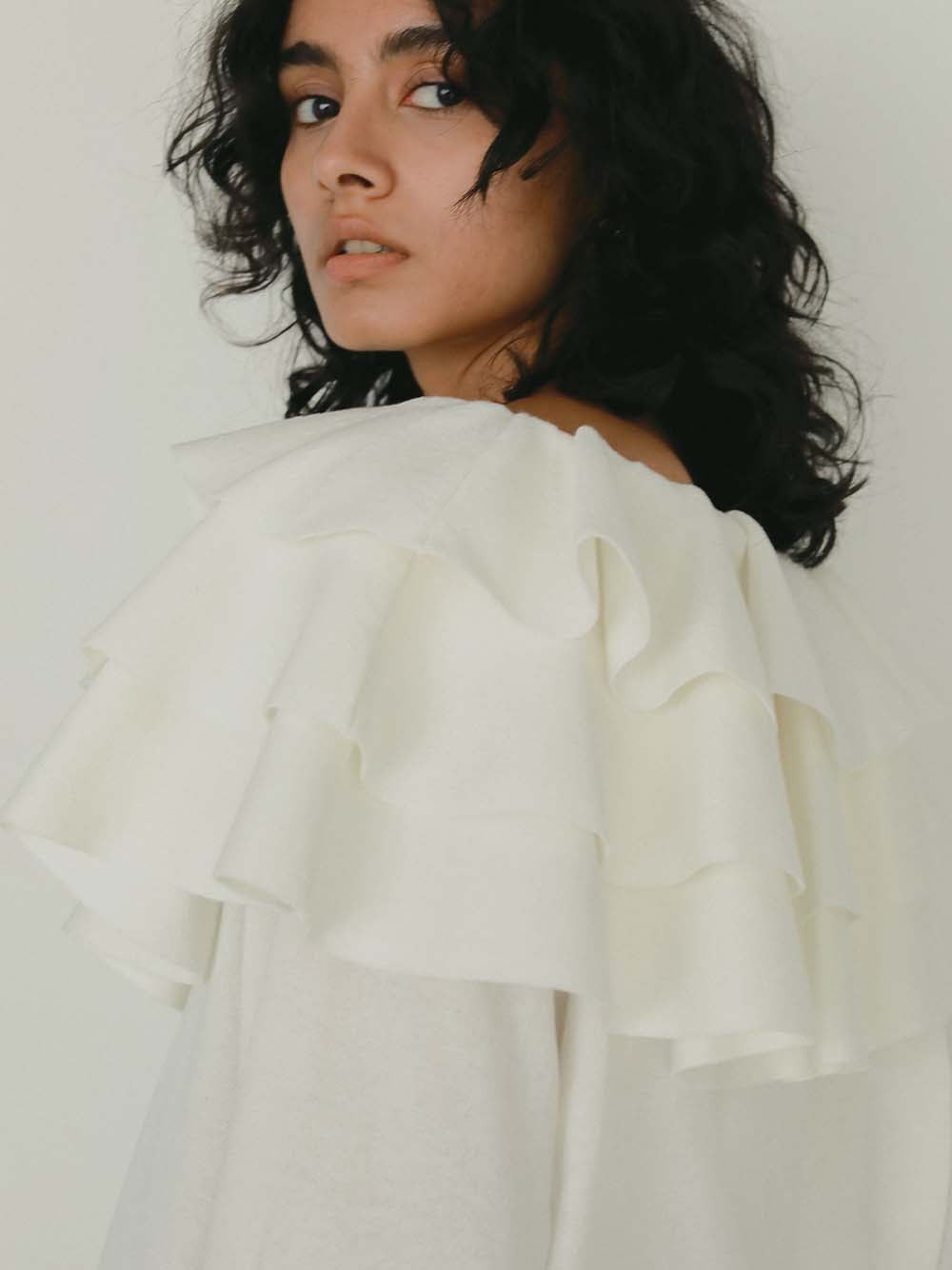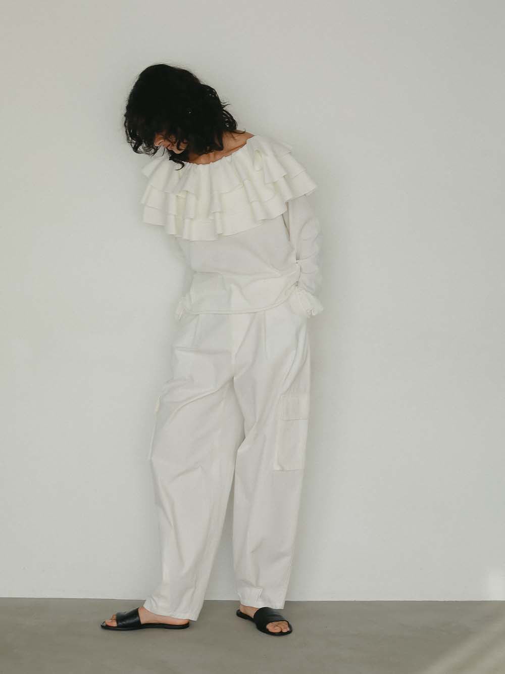 片側の肩を落としてオフショルとしても着回し可能。