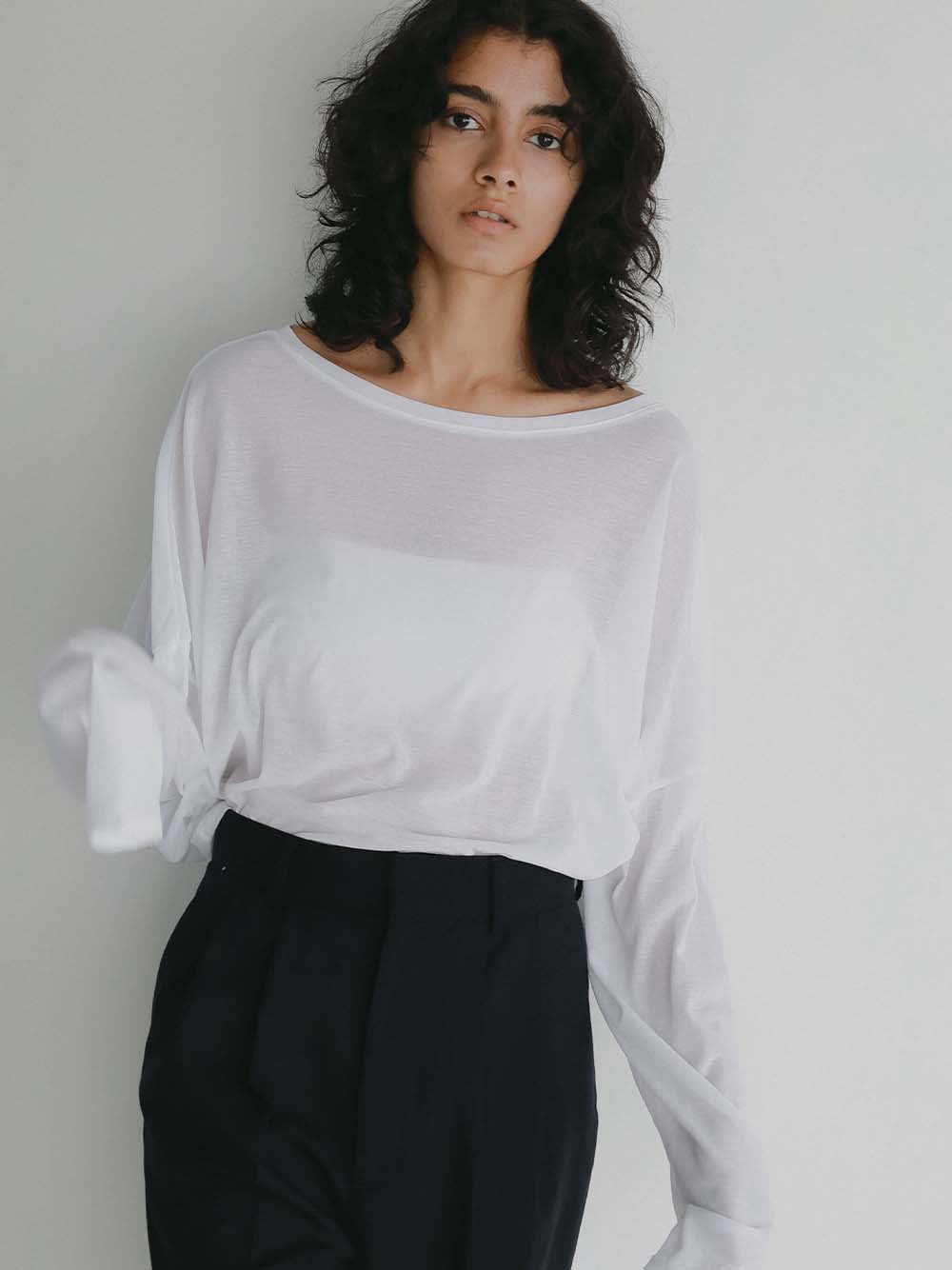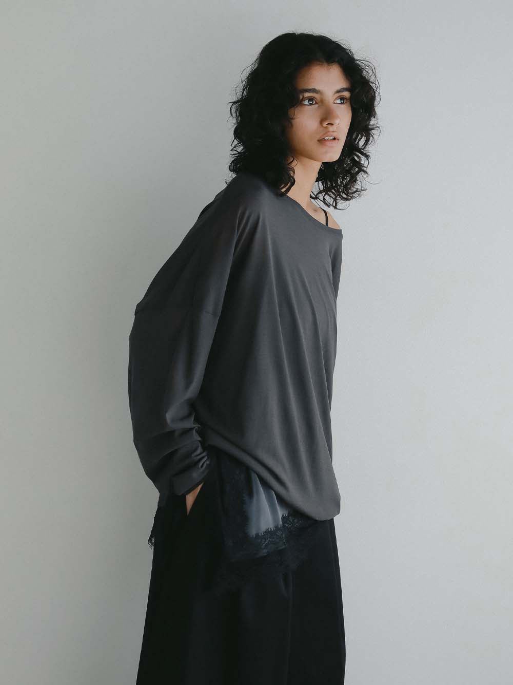 シアーカットソーと同素材のビッグシルエットプルオーバー。