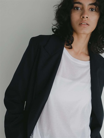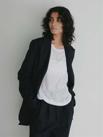 ボディはかなり大きめのメンズサイズのようなビッグシルエットに設定しているので、薄い素材感ですが肌離れがよく透け感を気にせずをエアリーに着用頂けます。