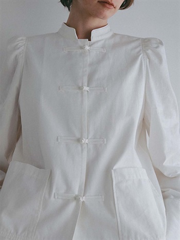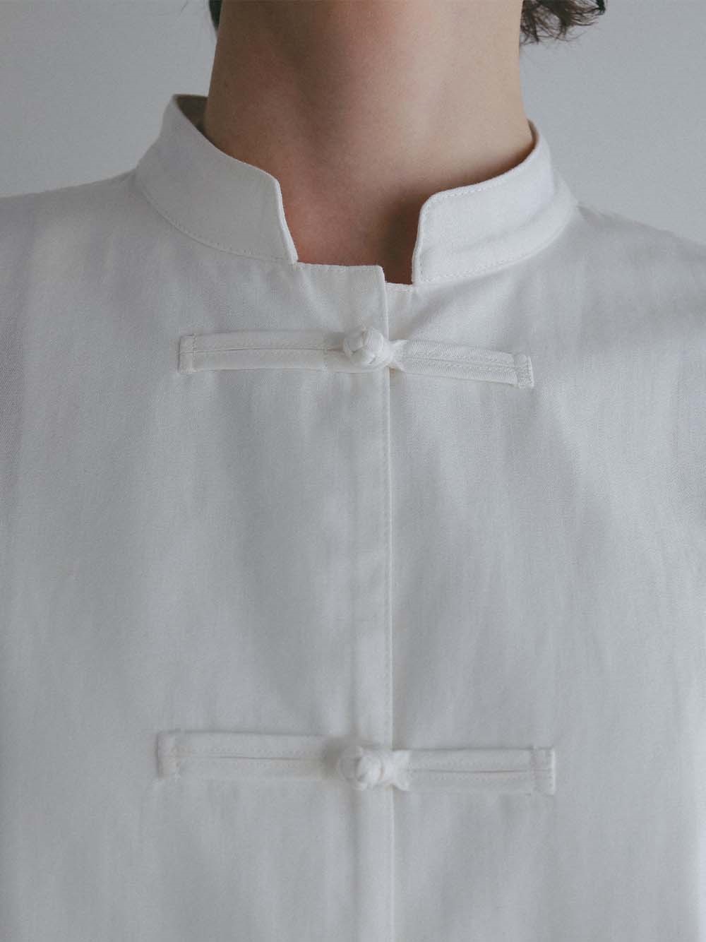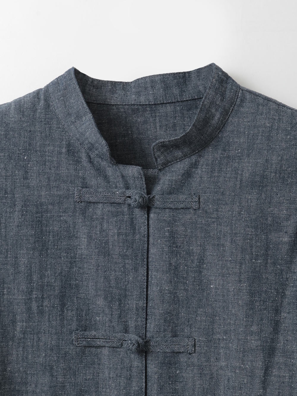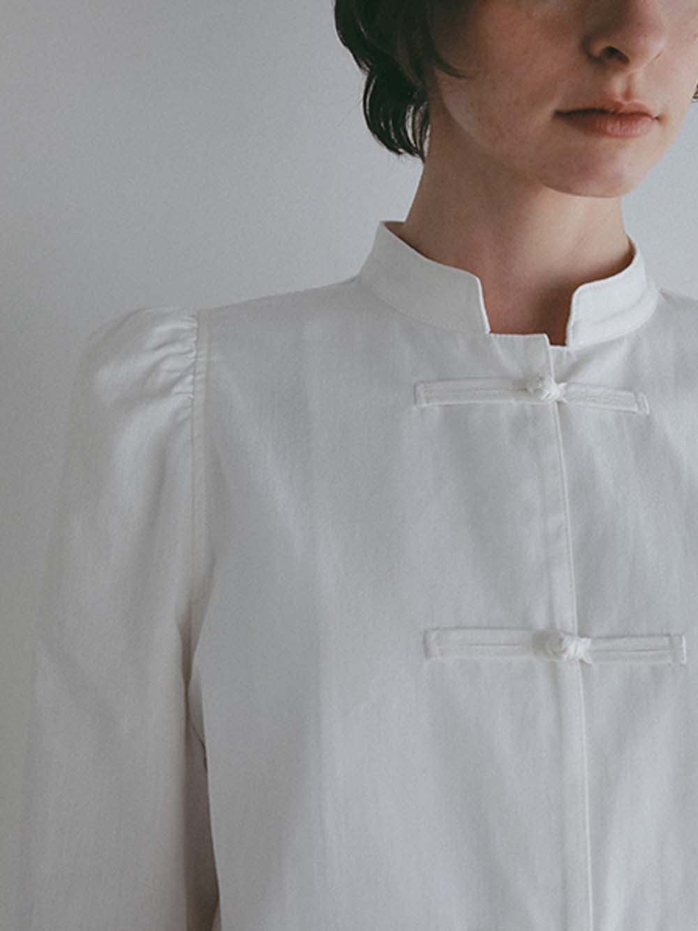 適度にハリのあるコットンリネンを使用したチャイナブラウス。