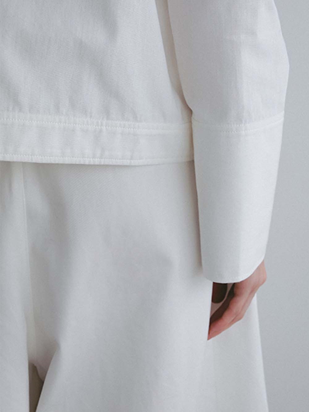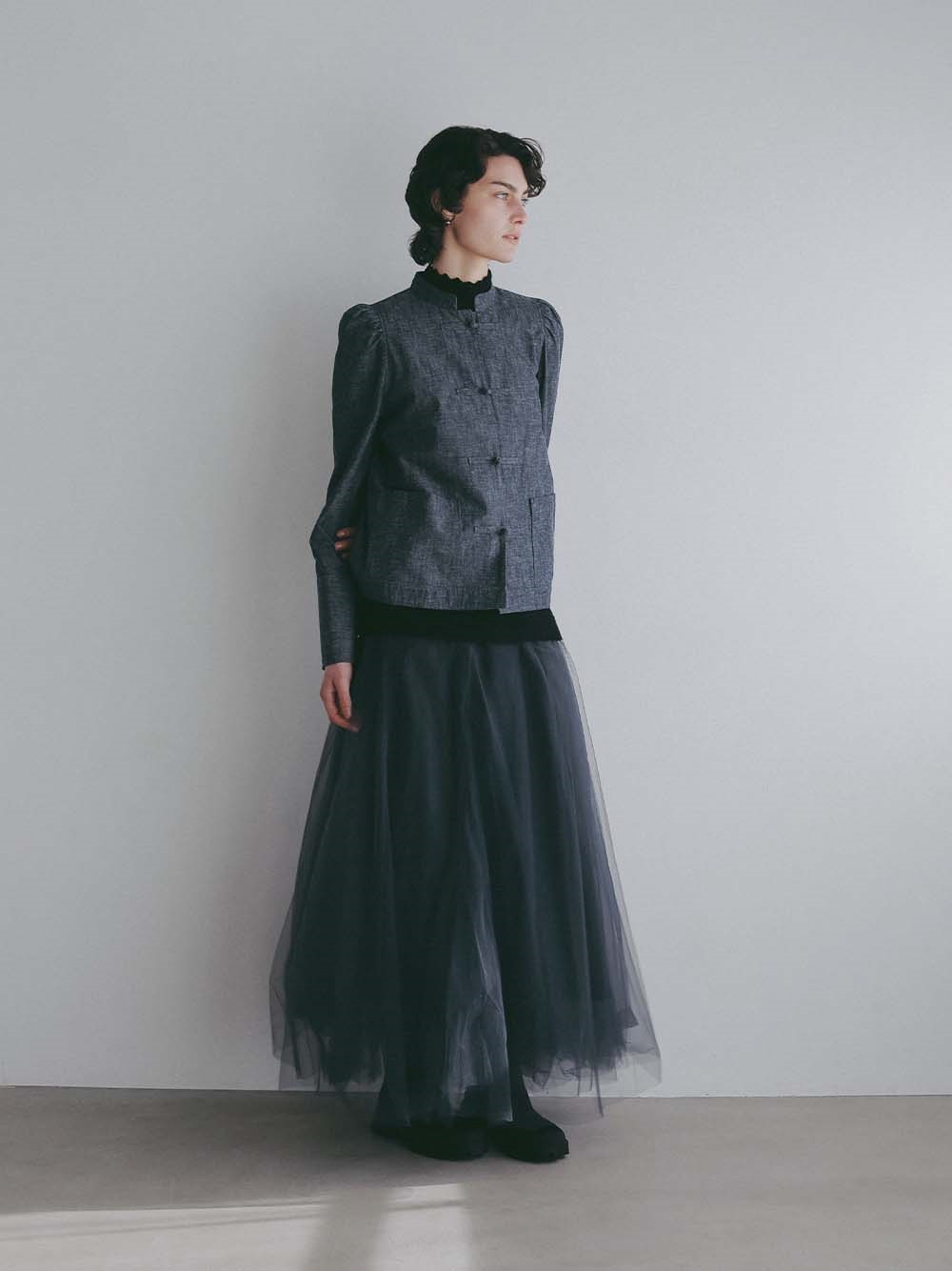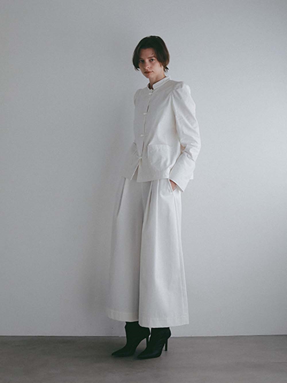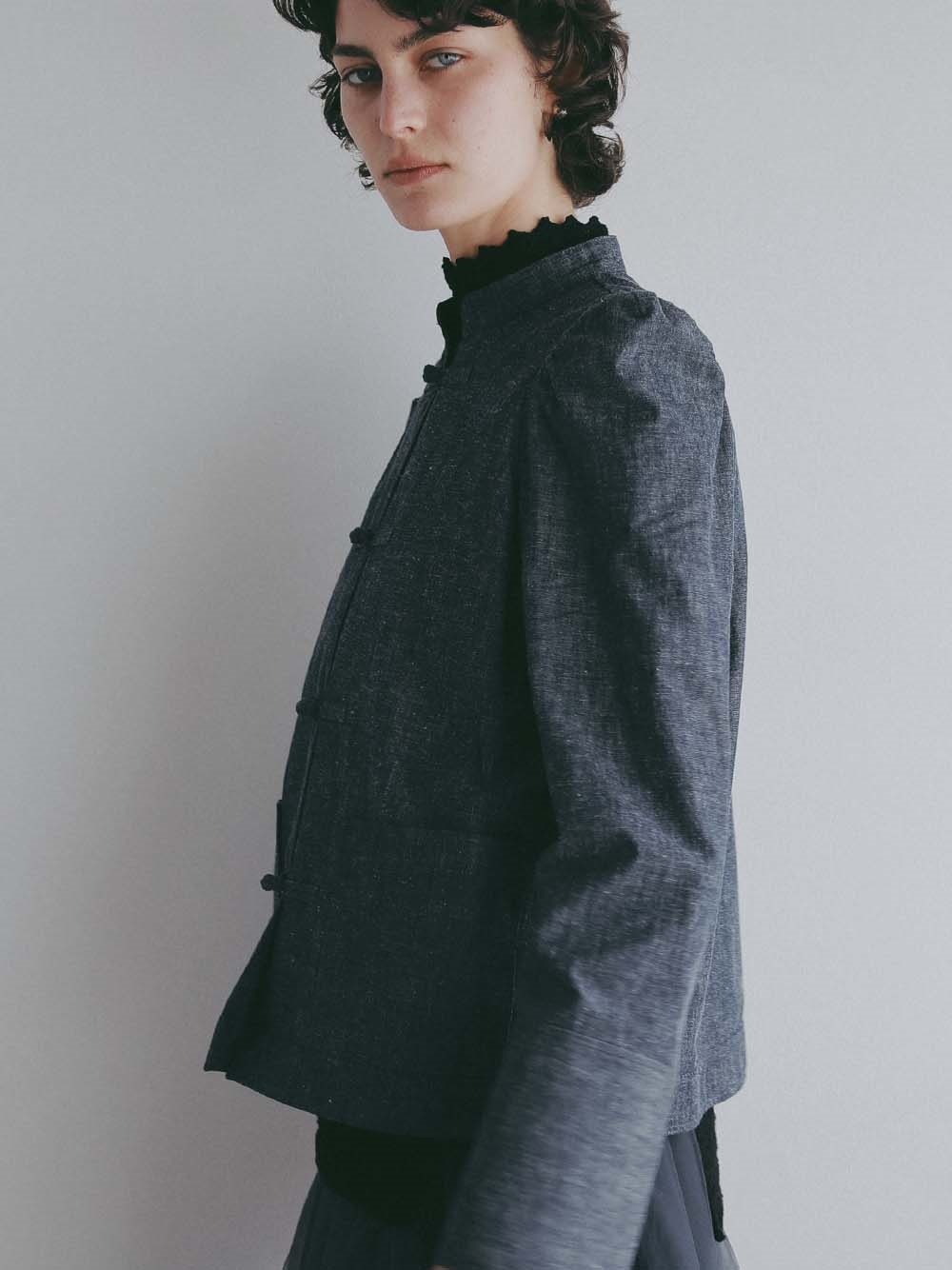 適度にハリのあるコットンリネンを使用したチャイナブラウス。