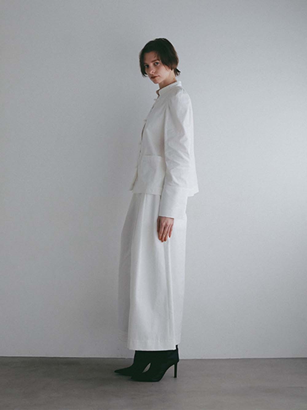クリーンな白とデニムライクなカラーのネイビー、どちらも旬な雰囲気の1枚です。