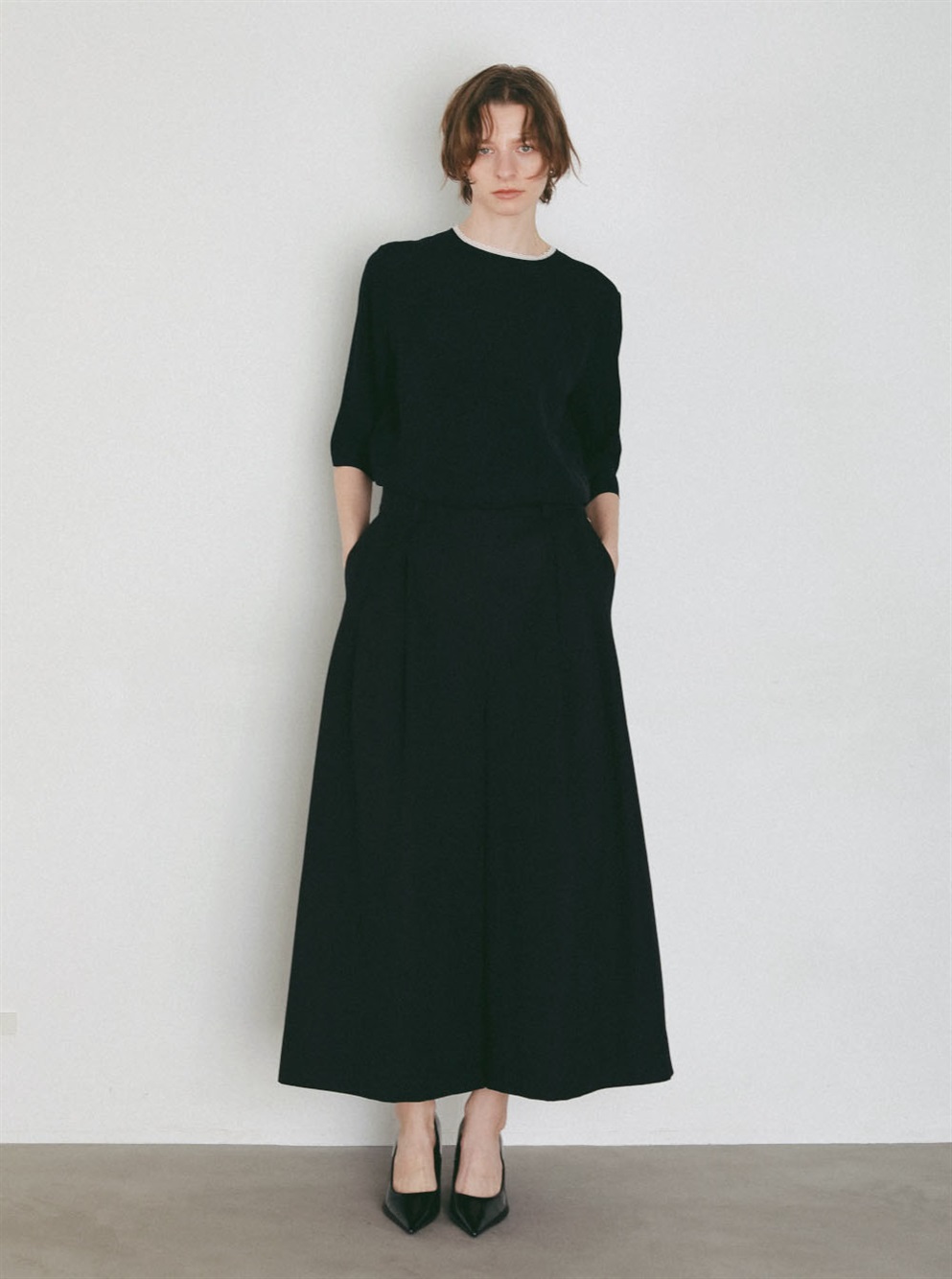 腰回りが大きく見えないサイジングと裾に向かってワイドに広がる裾幅はスカートの様な雰囲気でもご着用いただけます。
