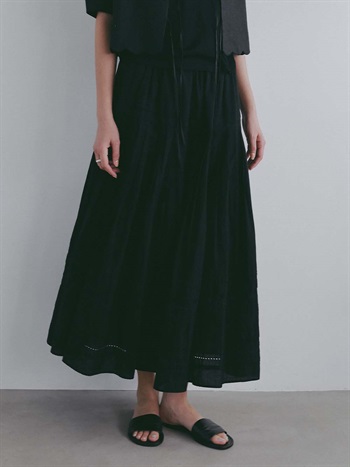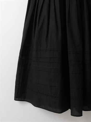 ランダムにタックをたくさんいれた、ふんわりとしたボリューム感が印象的なコットンスカート。