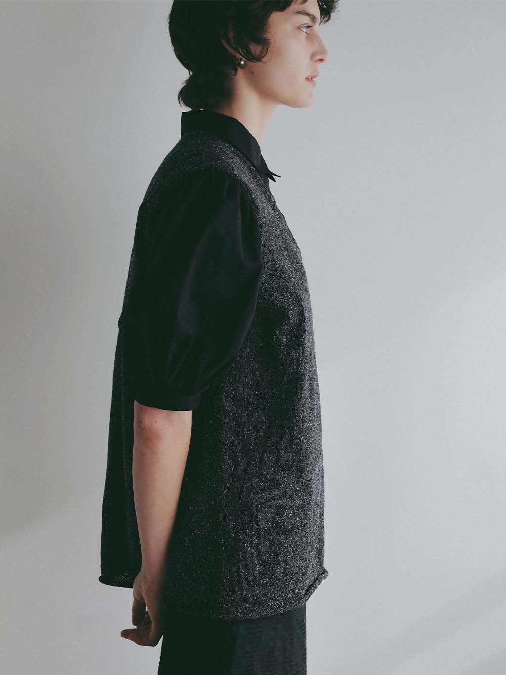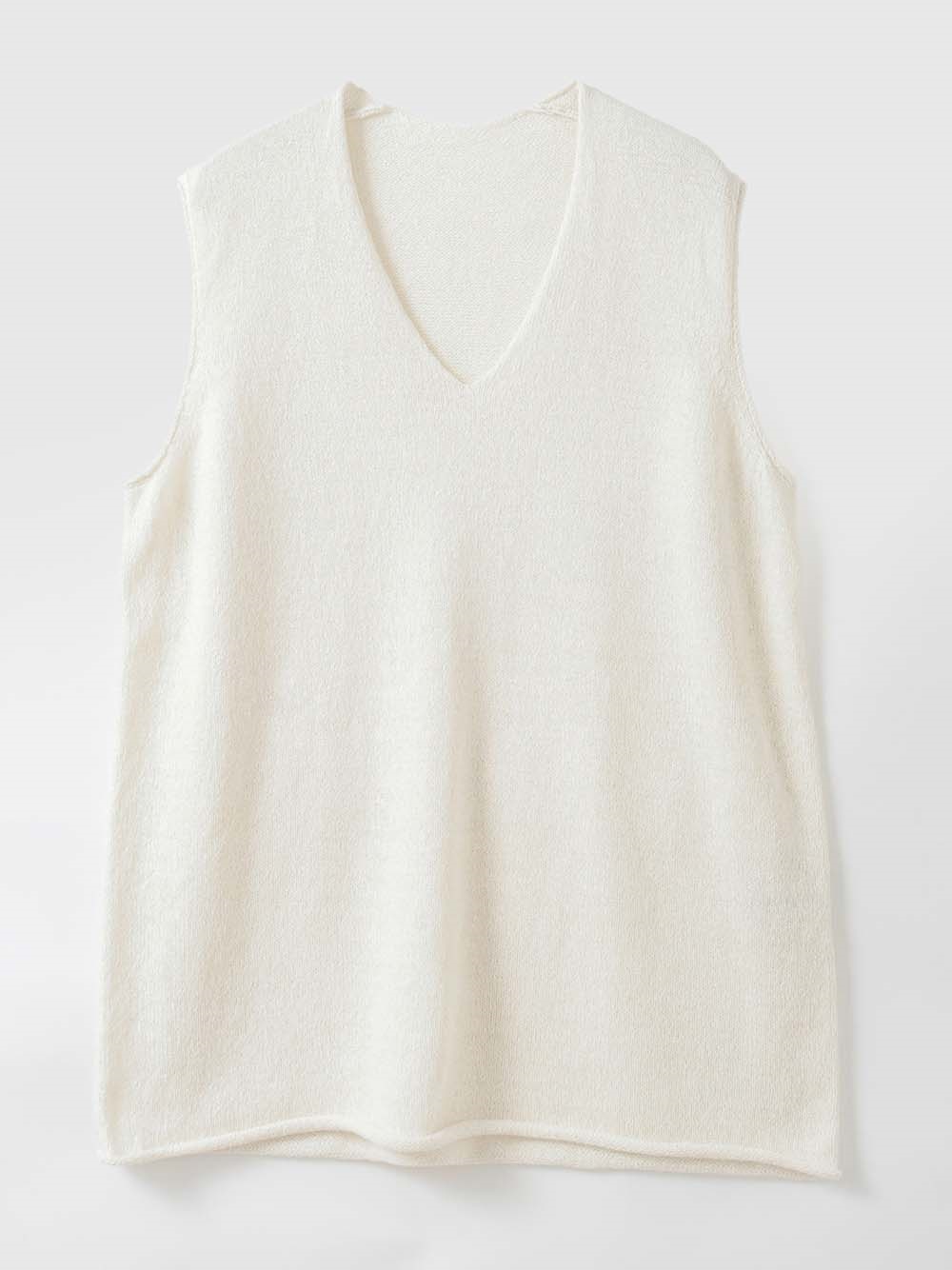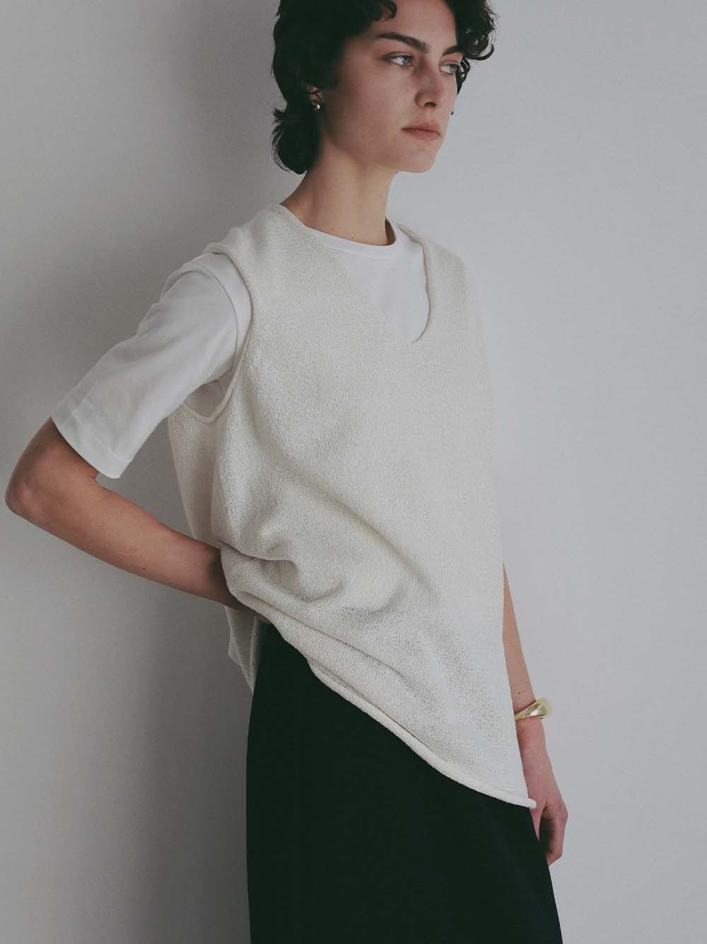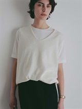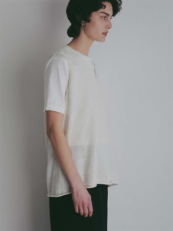 シルクと和紙の糸を撚糸して作った清涼感あふれるニットプルオーバー。