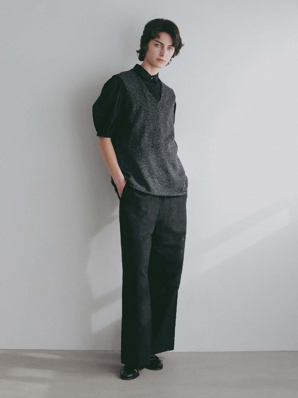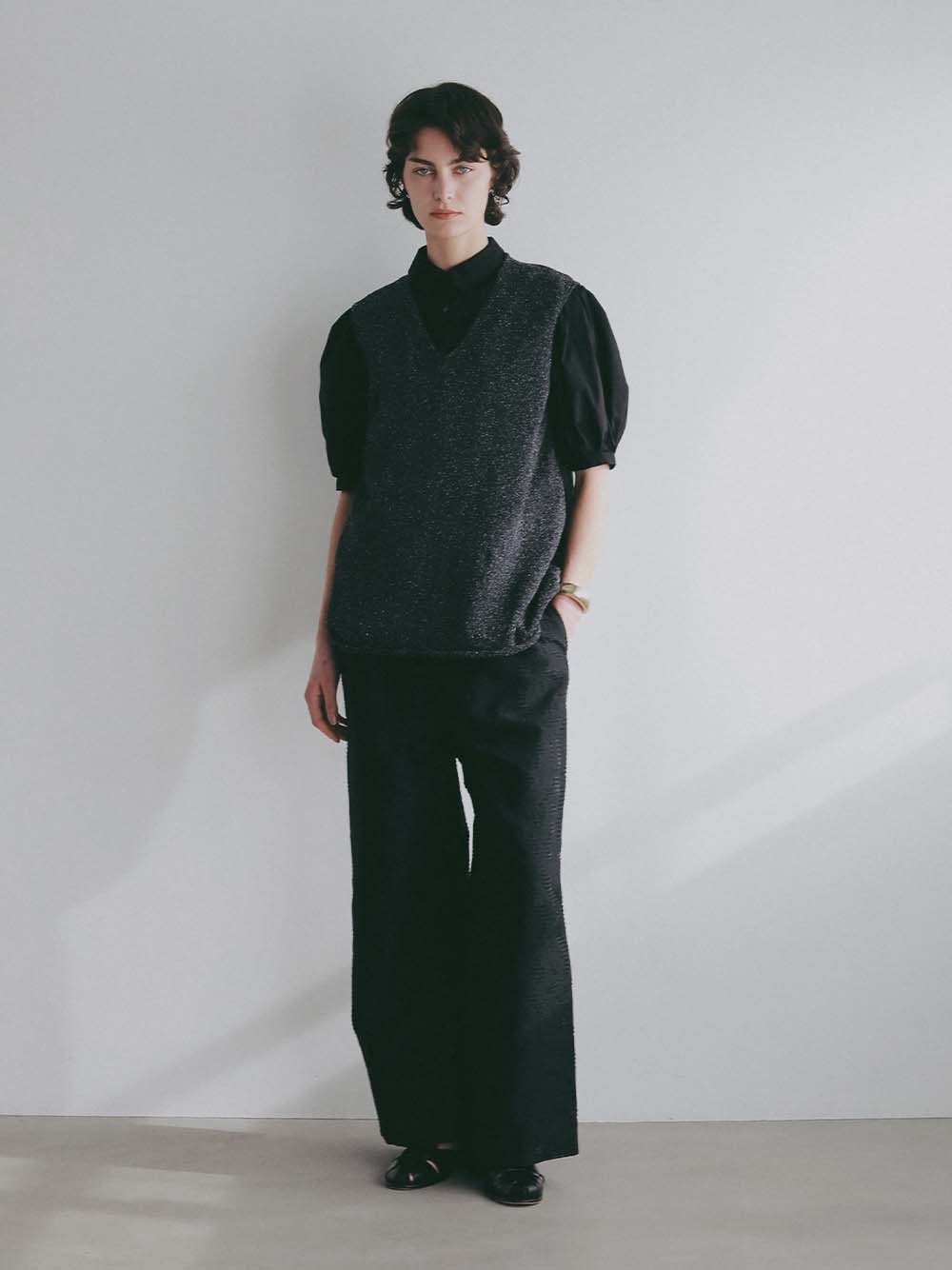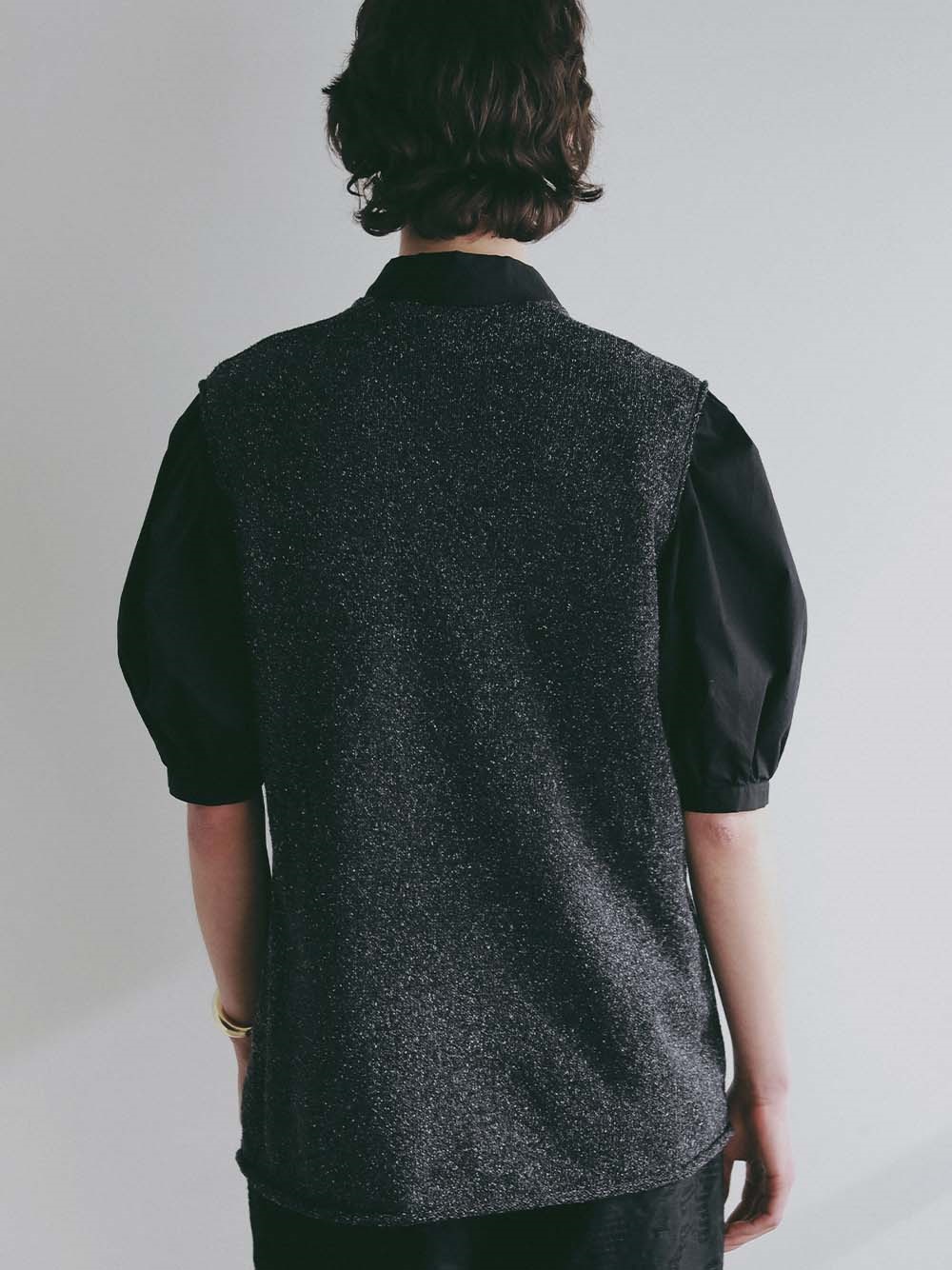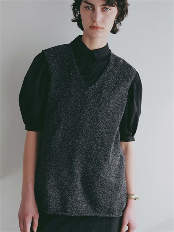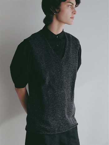 シルクと和紙の糸を撚糸して作った清涼感あふれるニットプルオーバー。