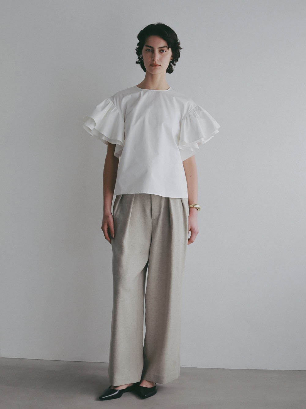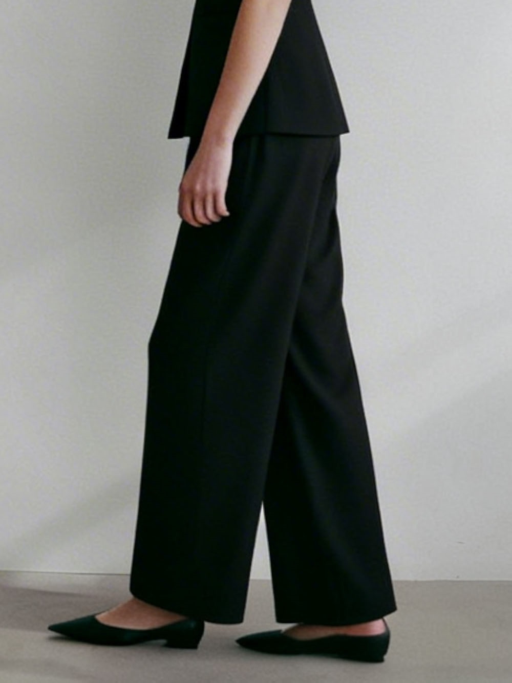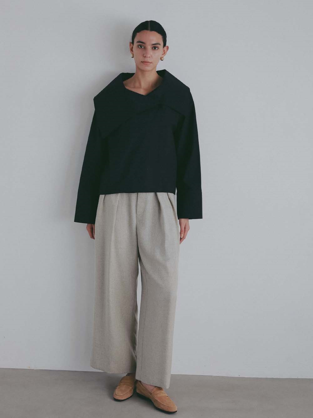 シワになりにくく落ち感がキレイなセミワイドパンツです。