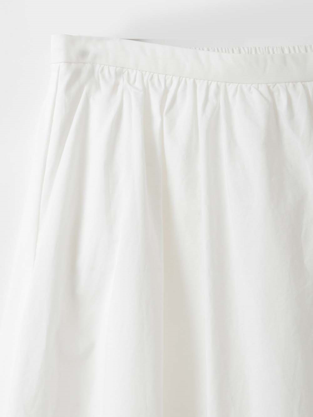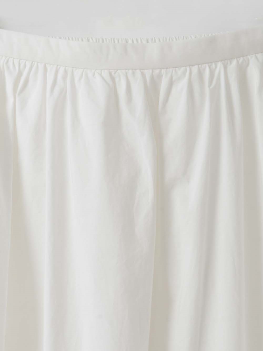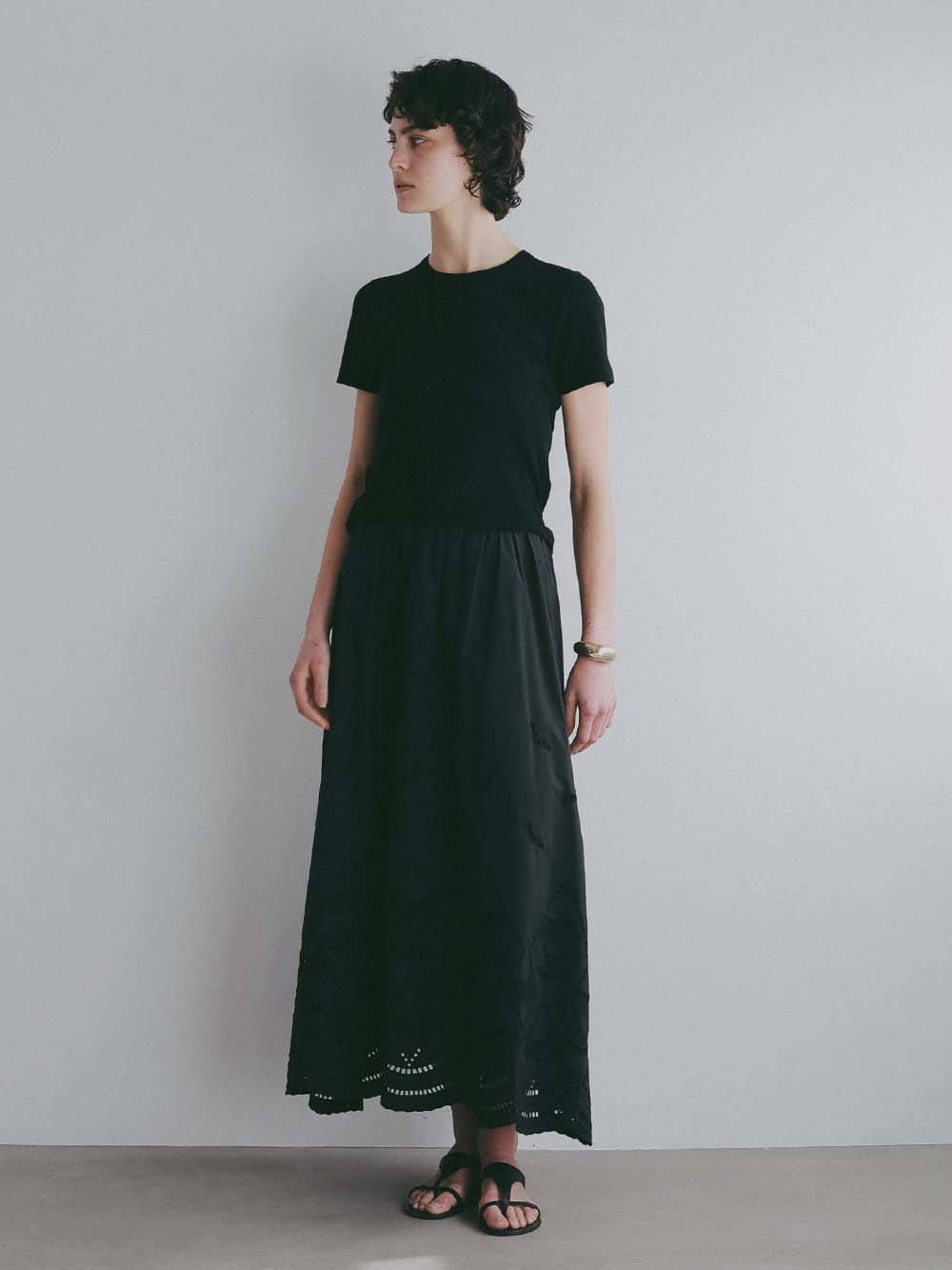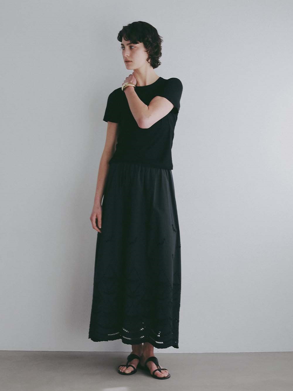 裾の直線を活かしたシルエットで、両脇のフレアを少し落とし甘さを抑えた1枚です。