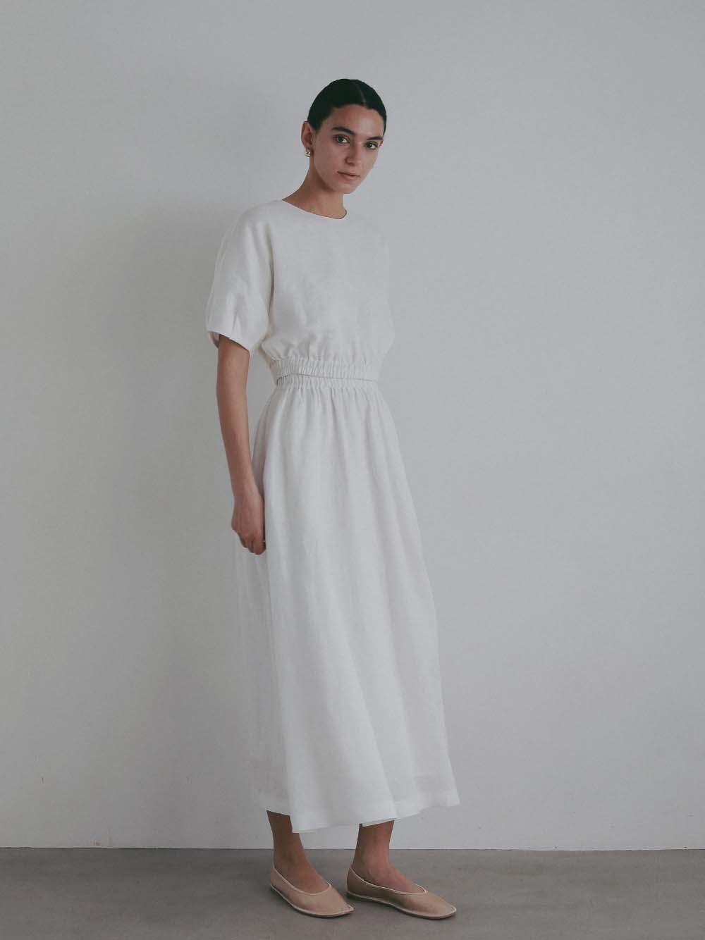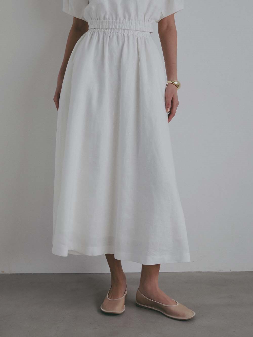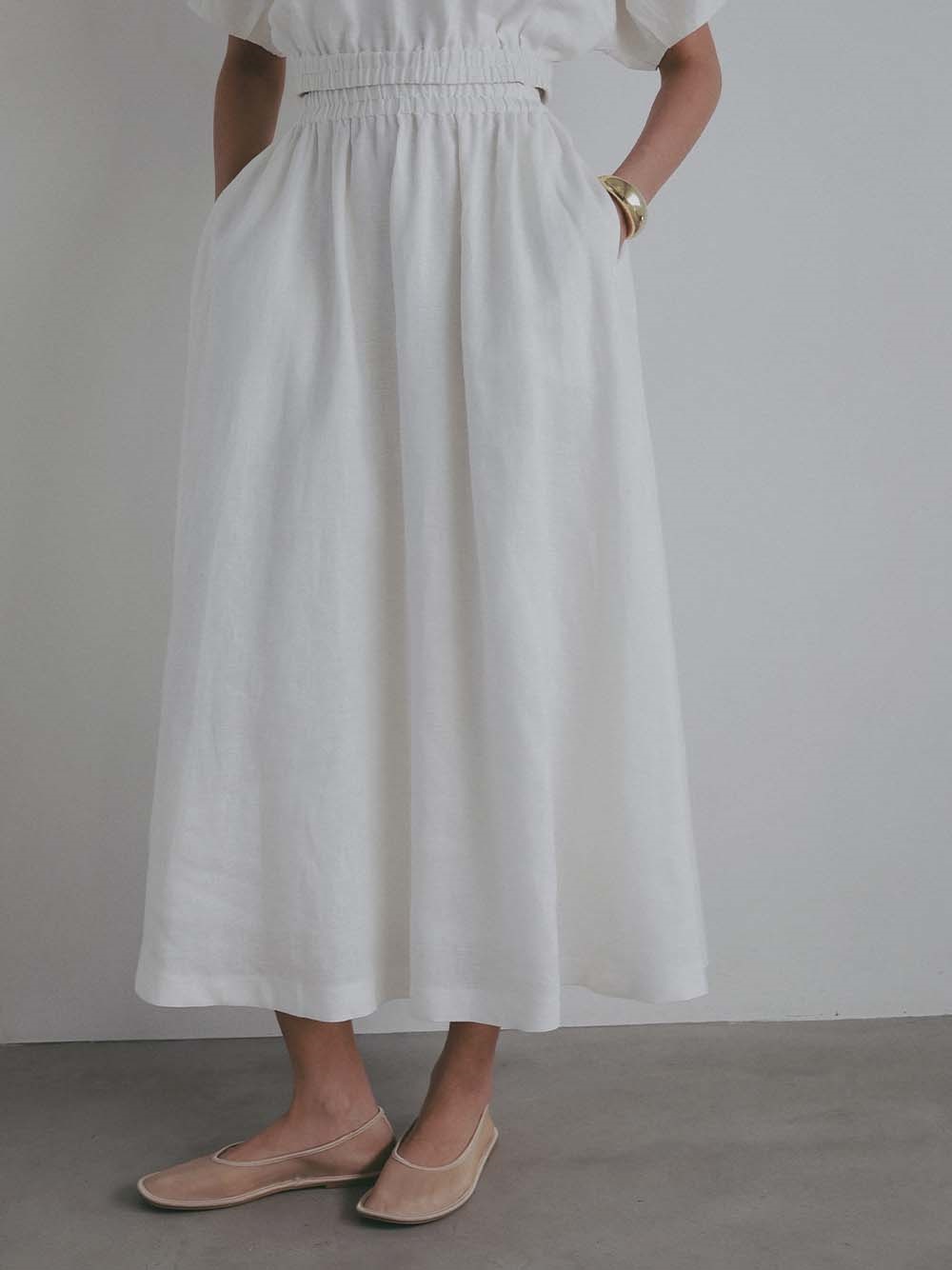 サラリとした麻素材を使用したフレアスカート。