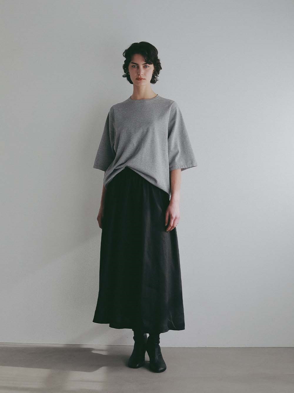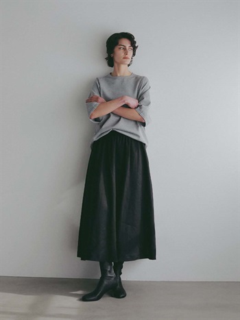 同素材で展開しているドルマンプルオーバーと合わせてワンピースの様にご着用いただくスタイリングもおすすめです。