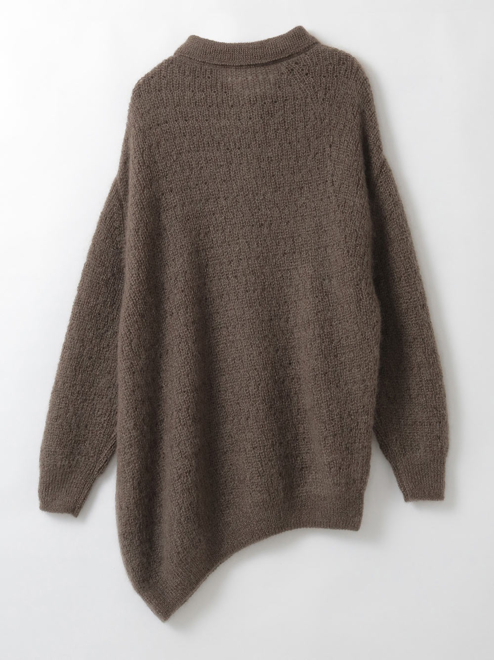 裾がアシンメトリーになっており、着用した際に見え方が変化する面白さがあります。