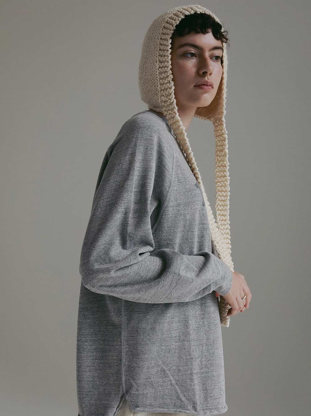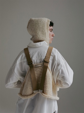 シグネチャーのハンドニットをメインに2019AWスタート。国内生産にこだわり布帛・カット・ニットの知識を生かして機械編みだけではなく、背景の数少ないハンドニットや家庭機、手横機を生かしたニットを多く展開する。