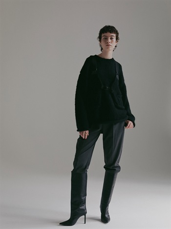 シグネチャーのハンドニットをメインに2019AWスタート。国内生産にこだわり布帛・カット・ニットの知識を生かして機械編みだけではなく、背景の数少ないハンドニットや家庭機、手横機を生かしたニットを多く展開する。