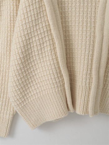 背景の数少ないハンドニットや家庭機、手横機を生かしたニットを多く展開する。