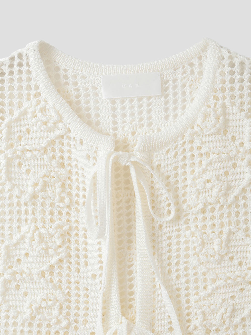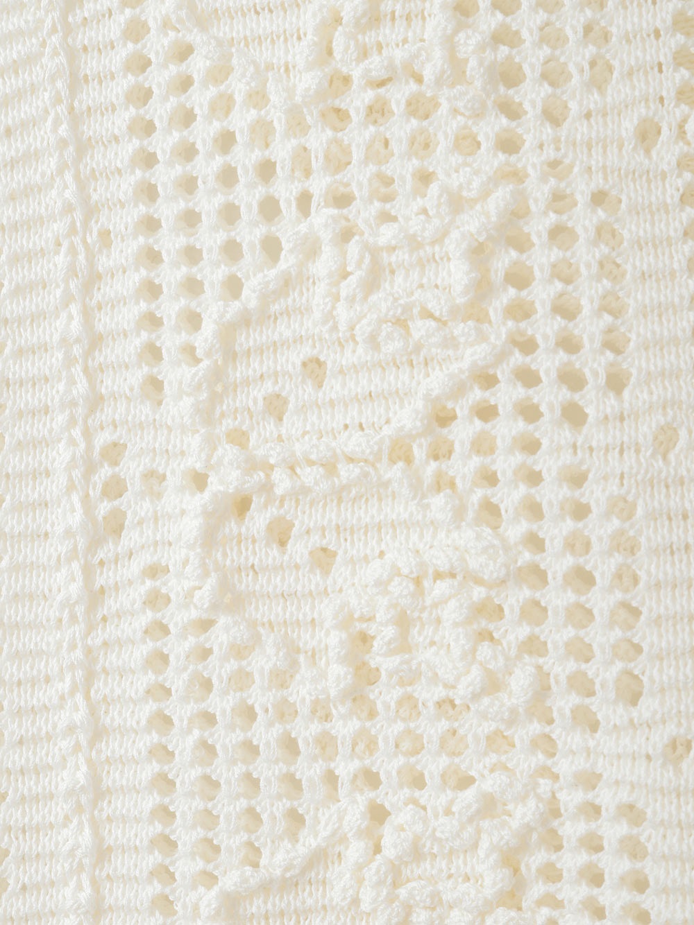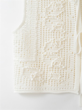 背景の数少ないハンドニットや家庭機、手横機を生かしたニットを多く展開する。