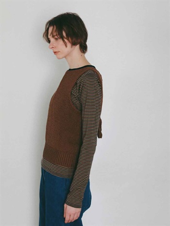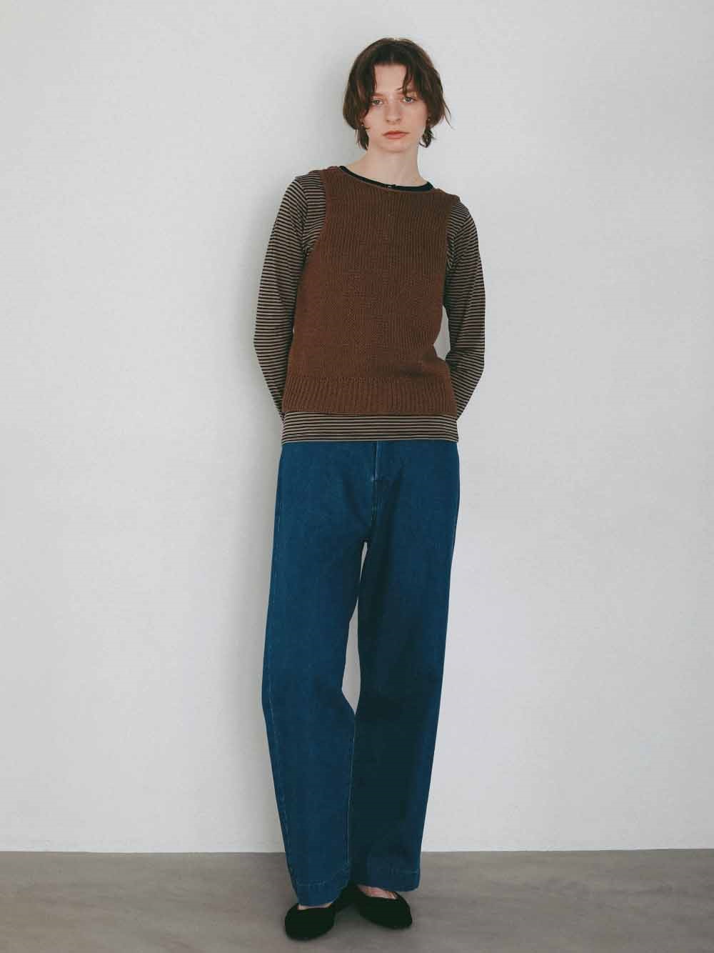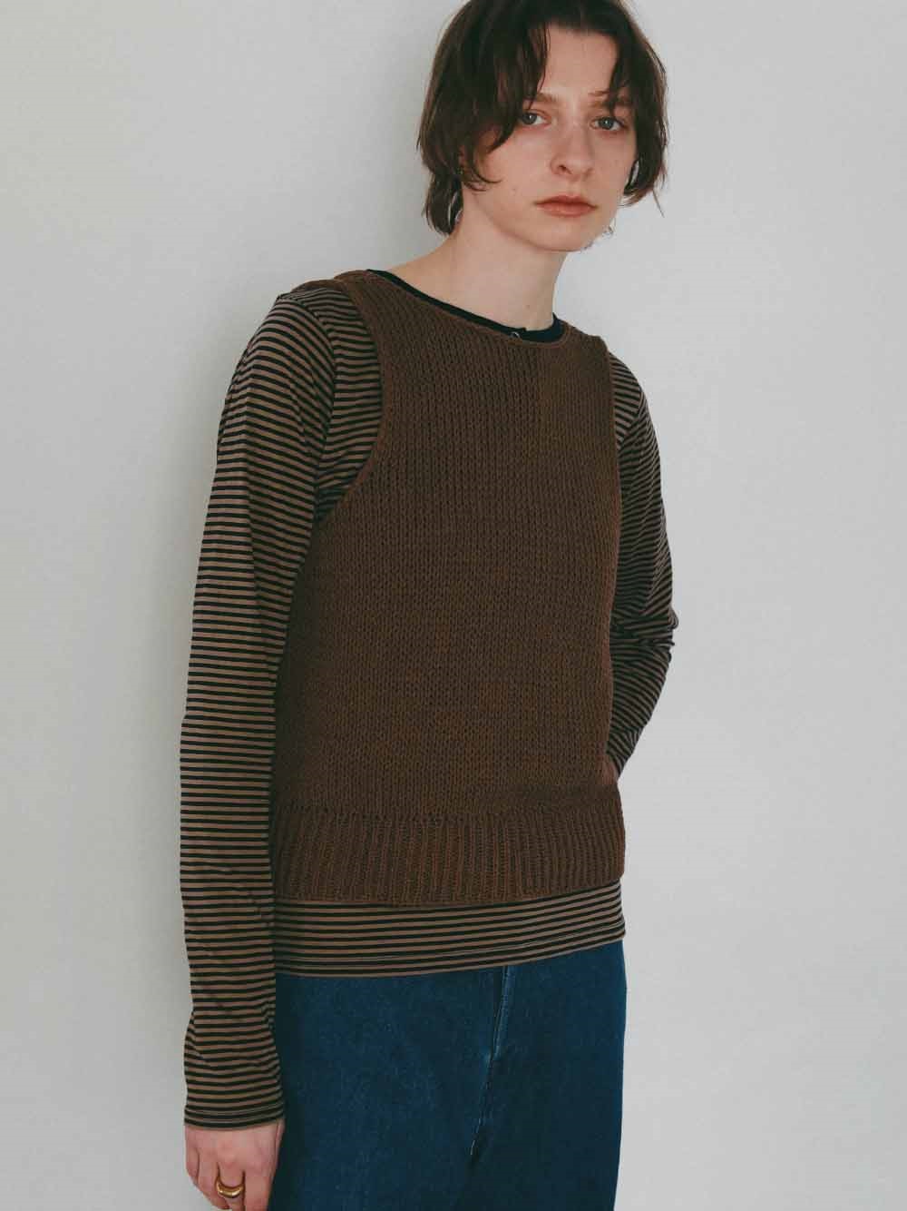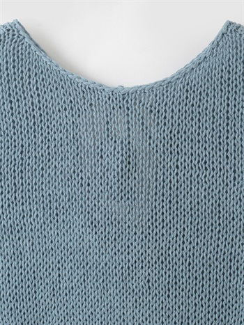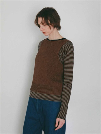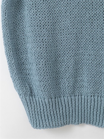 背景の数少ないハンドニットや家庭機、手横機を生かしたニットを多く展開する。