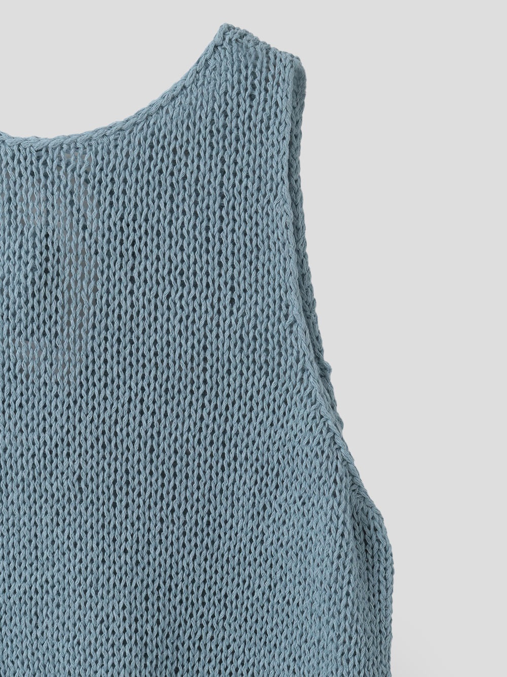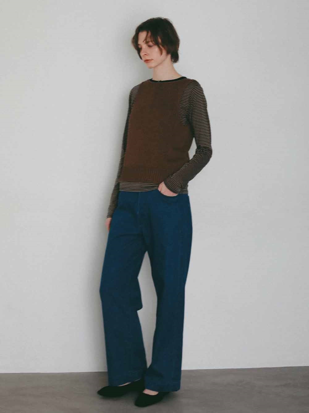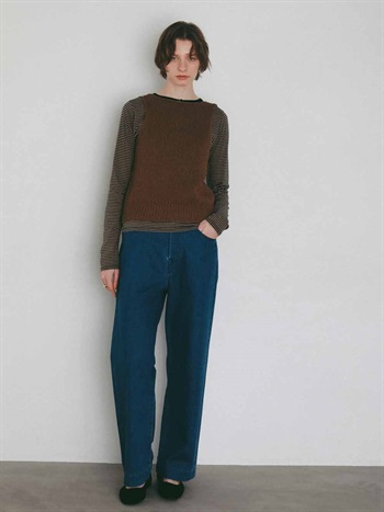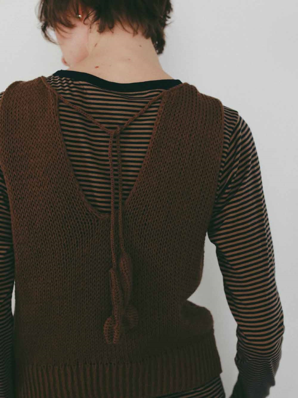 背景の数少ないハンドニットや家庭機、手横機を生かしたニットを多く展開する。