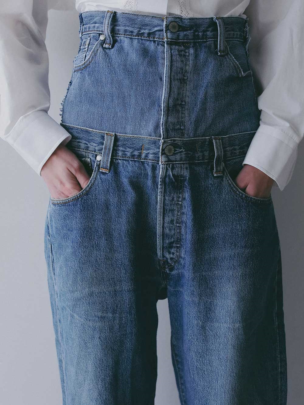 ダブルウエスト仕様なので、ハイウエストやローライズにしてみたりと、気分によって着用パターンの変化を楽しめます。